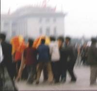 警察和便衣们开始抢他们的横幅,但他们紧紧抱住横幅不放,警察猛打他们的头部和双手,周围的大法弟子纷纷高喊:“警察打人啦!警察打人啦!不准打人!不准打人!”紧接着附近成百上千的大法弟子纷纷站出来,高喊“法轮大法好,法轮大法是正法,法轮大法就是好!还法轮大法清白,揭露江泽民的骗人谎言!”他们几年的修炼似乎都是为了这一刻的呐喊。听着他们发自心肺的呼声,看着同时伴随而来的警察的毒打,一些围观的游人都哭了,随着站出来的弟子越来越多,这种悲壮场面越来越无法用常人的语言表达,因为只有通过这样的场面才能看到大法在人间的真实体现到底是什么!8点22分武警官兵把这些大法弟子围成一圈,并开始向外猛推行人,使包围圈越变越大,同时警察和便衣抓打横幅和喊口号的大法弟子进圈内,8点50分一弟子把复印的几百份大法资料抛向空中,撒向周围万余名围观群众,人们不顾警察的恐吓纷纷去捡传单,不一会儿警察即把游人完全清除天安门广场之外,天安门广场完全戒严(见图1)广场内只有大法弟子、警察和警车,期间有几名大法弟子冲破警察包围,向广场跑去,被十几名警察猛追。