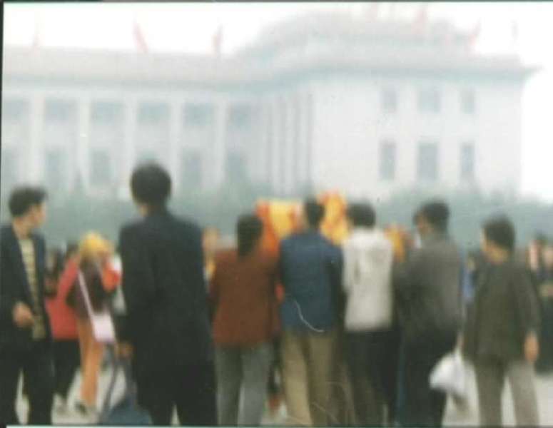 约上午8时许,行动的弟子们开始增多,他们打出横幅或高喊“法轮大法好”等,也有少数弟子撒放一些大法资料。有一次是在国旗周围,一位弟子首先喊出“法轮大法好”,然后有七八个弟子在人群中一起高喊,他们的声音就连广场外面也能听到。周围的游人默不作声地在一旁看着,持续一分钟之后,警方才赶来将人抓走。