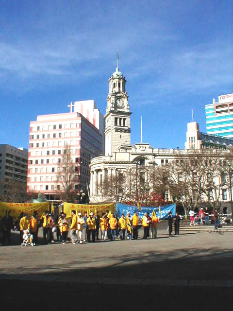 游行从皇后大道开始,经海关街至三文街后又回到皇后大道,共进行了1小时40分钟。在此期间,新西兰国家电视台和一家华文报社采访了学员。之后,学员们又赶到中国驻奥克兰总领事馆继续进行呼吁活动。