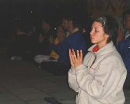 黄色法轮大法横幅显得格外夺目。很多行人都仔细观看那些照片,了解法轮功在中国遭受江泽民集团迫害的真相。很多人表示了同情和关注。有一个妇女看了江泽民迫害法轮功的照片说,这不是希特勒又一次再现吗!这些迫害无辜百姓的当权者从来没有好下场。