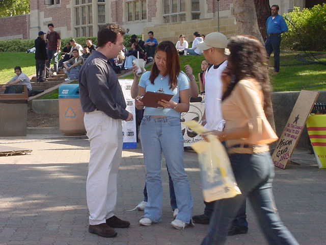 在加州大学洛杉矶分校(UCLA)设摊位征集签名