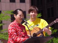 学员们别开生面的文艺演出和布置在周围的正法之路图片展吸引了许多政府官员和路人驻足观看。在演示了法轮功的五套功法之后,学员们表演了笛子和箫独奏、莲花舞、独唱、诗朗诵等精心准备的节目。中西学员合唱的“为你而来”打动了在场许多人的心。全体中西学员一起登台合唱的“法轮大法好”将庆祝活动推向了高潮。最后,全体学员在州政府大楼前向师尊合十、祝愿。