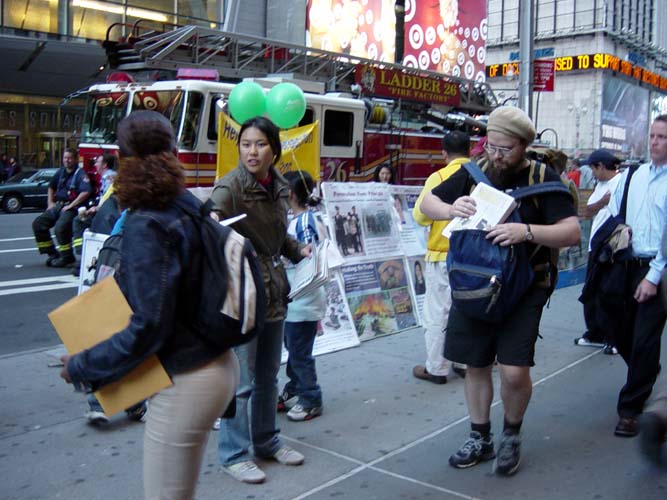 纽约曼哈顿42nd街和百老汇大道以及42nd街和第七大道上的讲真象活动。这里是澳大利亚和台湾弟子讲真象活动的地点。说两个在这里发生的小故事。