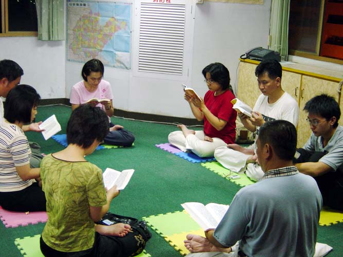 平日有多位学员提供家中的客厅成立学法组,形成良好的修炼环境。另外台湾北、中、南各地区也常举办大型集体学法交流会和法会,参加的人数动辄上千人,带动台湾人修炼法轮大法的热潮。