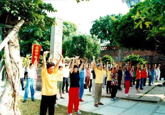不久师父来台,在台中雾峰农工学校讲法,其中一句话大意是说“昏沉在床上多睡一个小时,不如起来炼功”这句话提醒学员要早起炼功,于是台南学员陈先生开始每天清晨提着录音机到公园炼功,当时是11月份,正义公园是新落成的,没有树林,冷风凉飕飕,但是学员们坚持下来,成为台南市第一个炼功点。