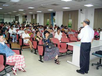 2003年7月7日起于台南市永华国小礼堂举办的五日‘亲师生法轮大法研习’活动,总共吸引了上百的教师报名参加。