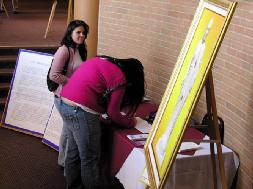 ![]() 法轮功学员给观众讲解迫害真象 | ![]() 法轮功学员在解答观众的提问 |