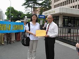 【明慧网二零零七年六月二十九日】为抗议港府屈从中共黑名单,自二零零七年六月二十五日起拒绝持合法签证的台湾法轮功学员入境香港,并遭暴力遣返的事件。人权法律基金会亚洲执行长朱婉琪在遭受两次香港政府无理的遣返后,二十八日前往立法院、大陆行政委员会递送陈情书,要求台湾政府单位重视香港政府对台湾民众非法的对待、暴力遣返。