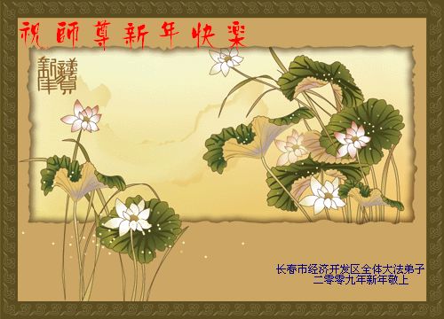 二零零九年元旦到来之际,我们大兴安岭林区大法弟子向慈悲伟大的师父致以最崇高的敬意!恭祝师尊元旦快乐!我们决不辜负师尊的殷切期望,一定遵照师父的要求做好三件事,用大法的标准严格要求自己,向内找修心性,既修好自己,又努力多救人,精進再精進,完成好历史赋予的伟大使命,做合格的大法弟子,让师尊多一份欣慰少一份操劳!走正走好最后的路,圆满随师还!