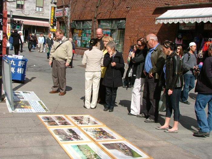 了解真相的人们一批又一批的,许多西方人是第一次听说法轮功的事情,几乎所有人都被中共的邪恶、残暴所震惊,不敢相信会有这样的事情发生。他们希望迫害早日停止。一对来自英语区的夫妇与法轮功学员交谈了大约二十多分钟,详细的了解法轮功和“四·二五”等情况,最后他们说:“我们支持你们的正义行为。”