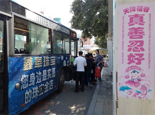 在铁岭,人们上街就能有机会遇到大法弟子告诉他们中共迫害大法修炼人的真相,抬头呢就看到“法轮大法好”、“三退保平安”等等的真相粘贴。