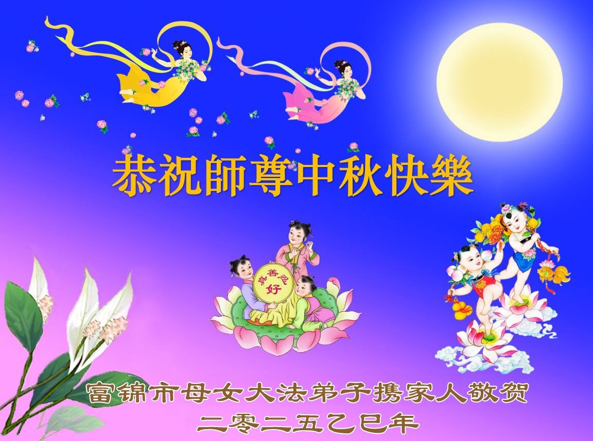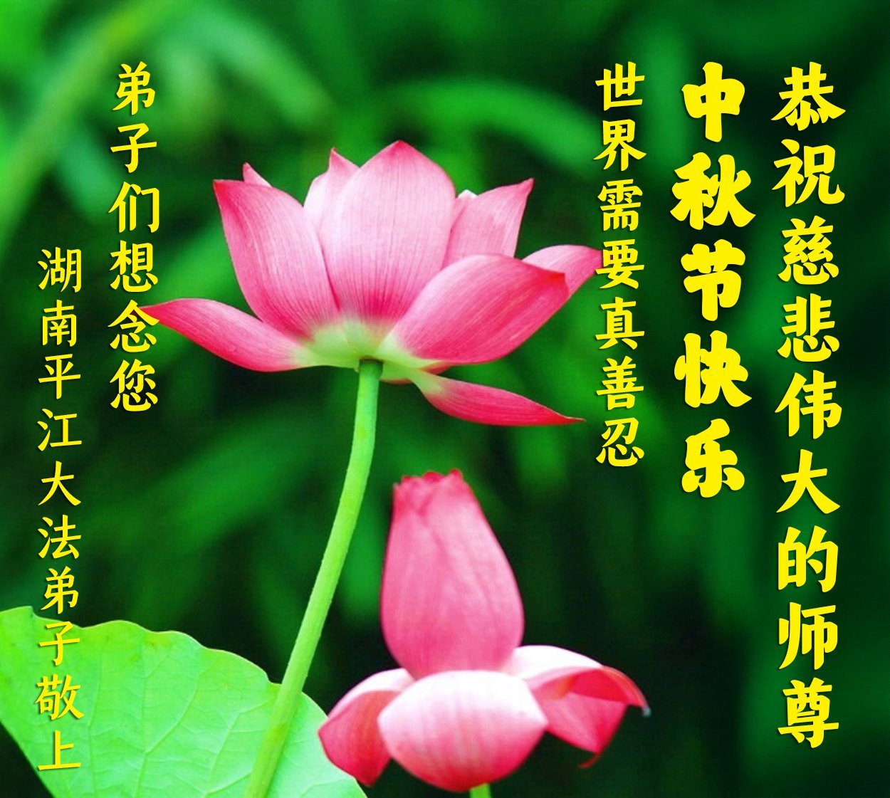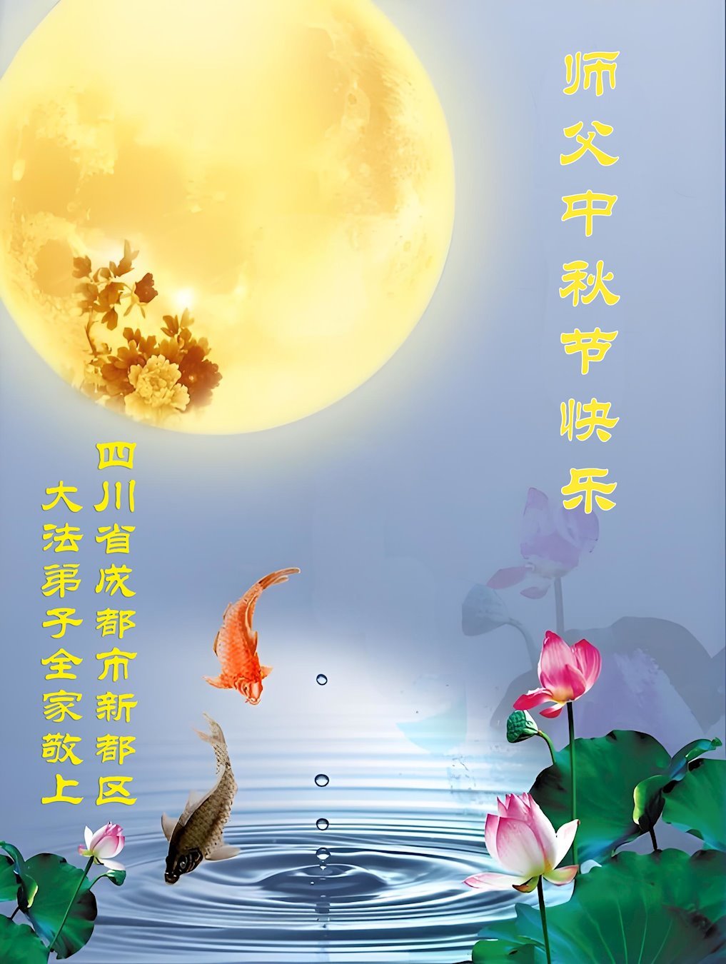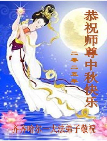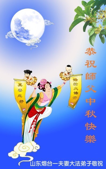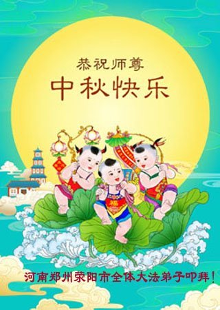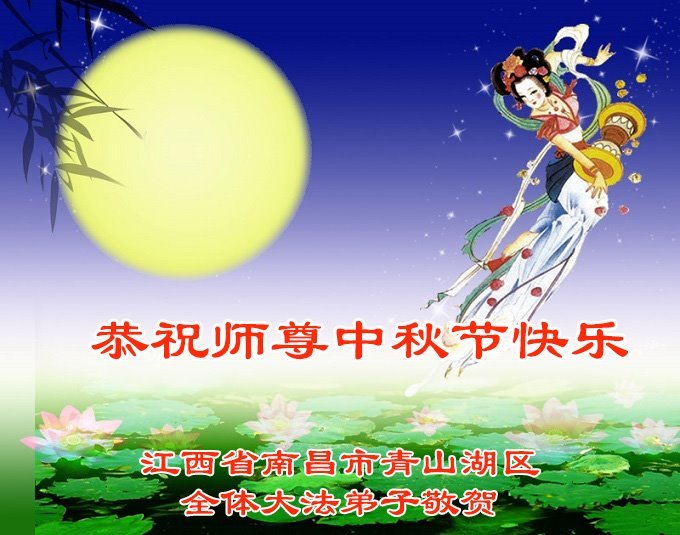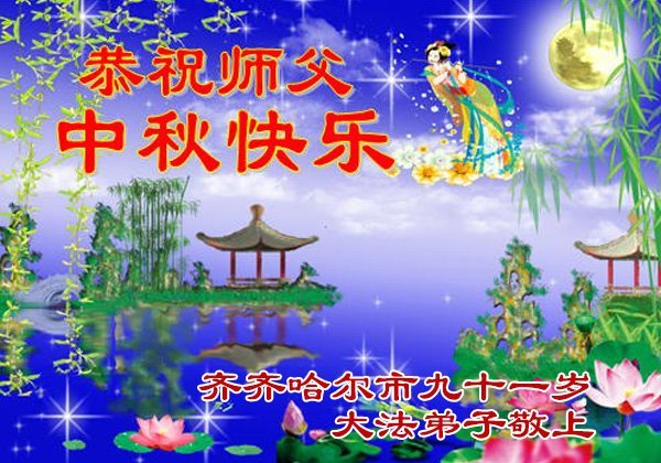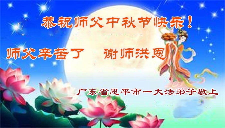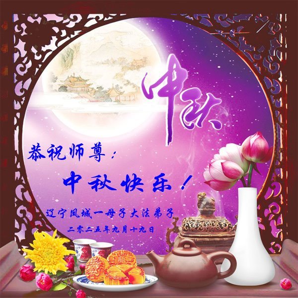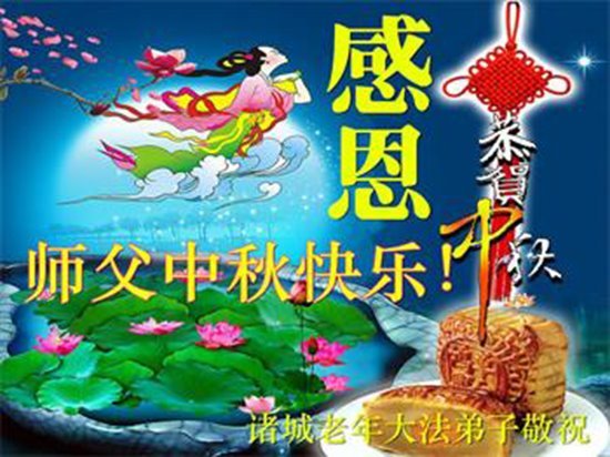 敬祝地球上最最尊敬的大法师父中秋节快乐!盼望大法师父早日回中国和您的弟子们团聚,愿您的弟子们早日脱离苦海!也祝福大师的弟子们中秋快乐!