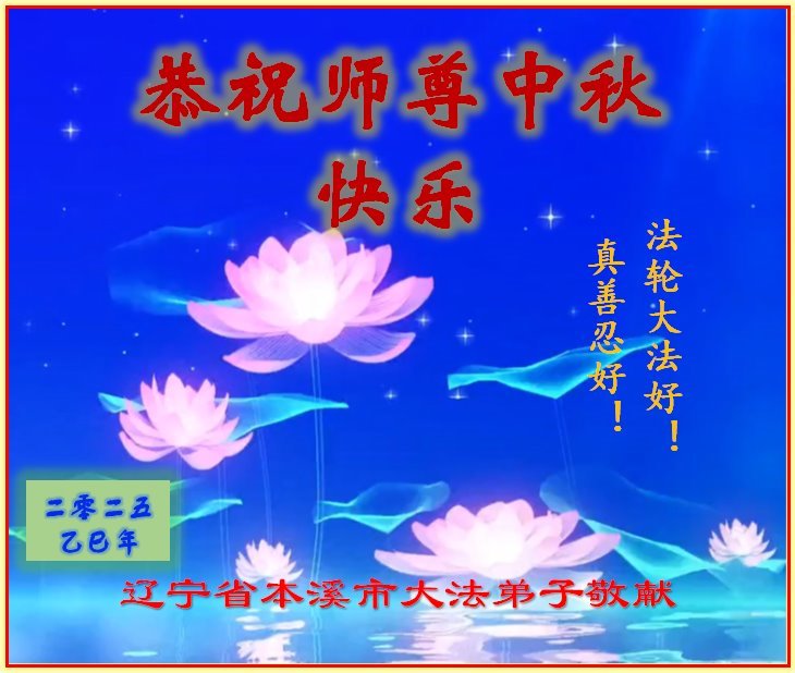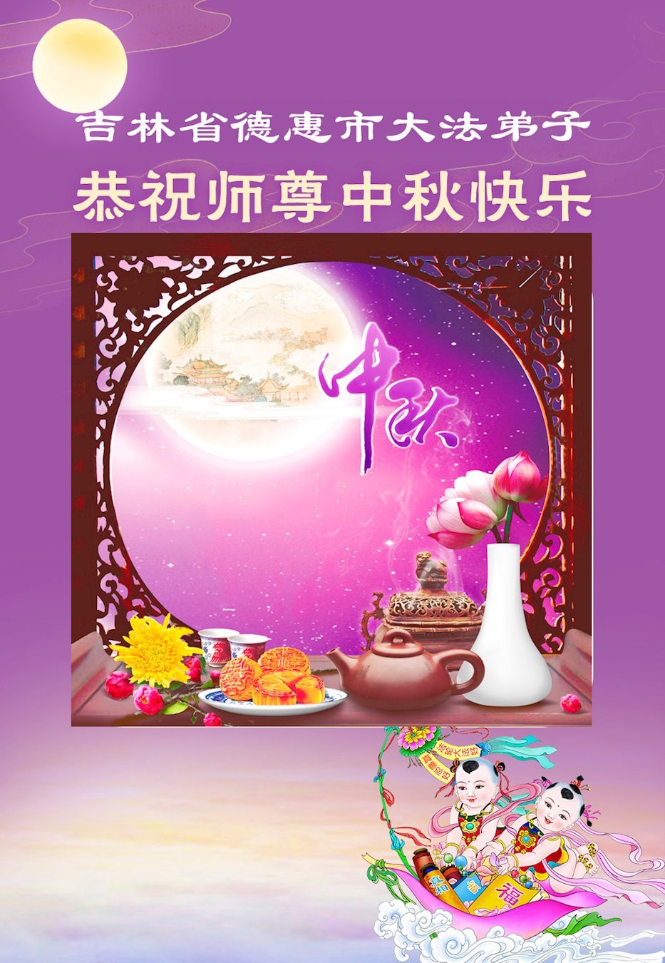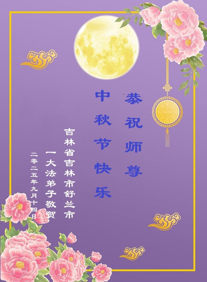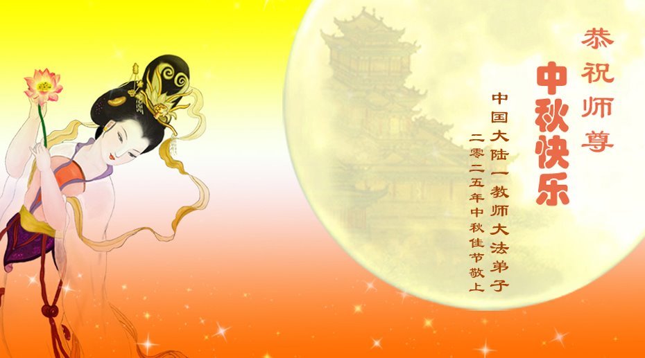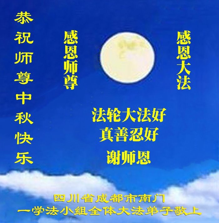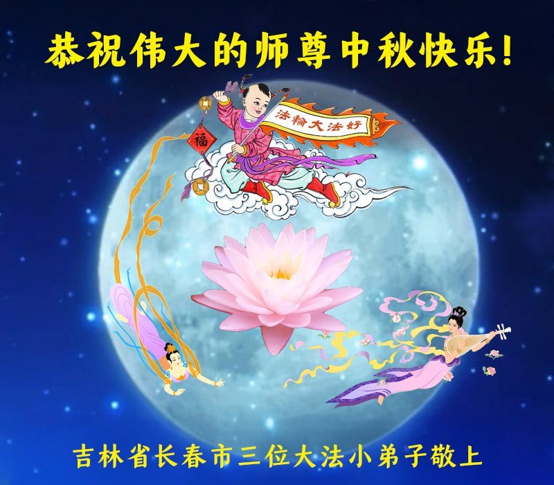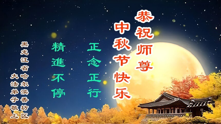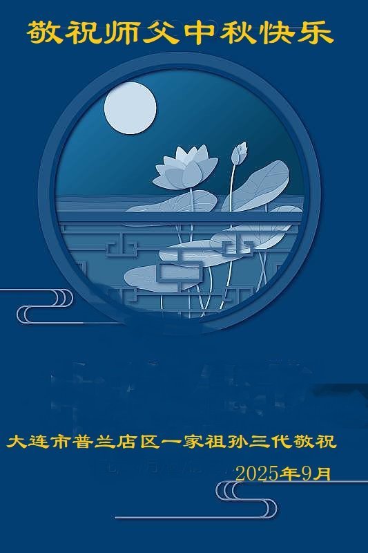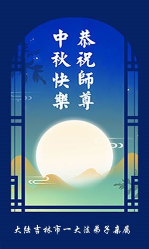 中秋佳节即将到来,在此祝愿李大师中秋快乐!愿中国人尽早抛弃邪党,过上真正属于人类的正常生活。愿大法弟子遭受的迫害尽快结束,能够正常的修炼,从而更好的福益于全社会、全人类。