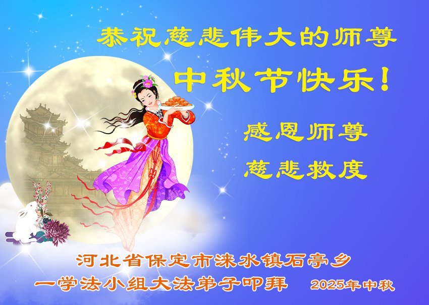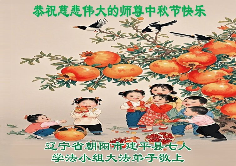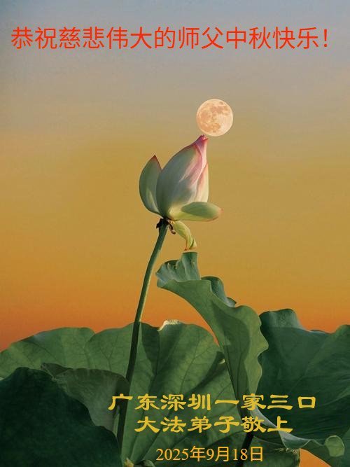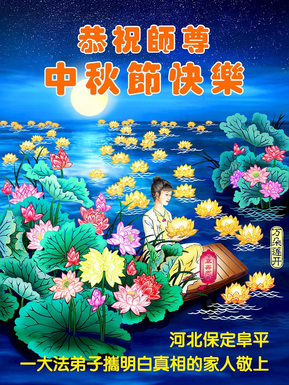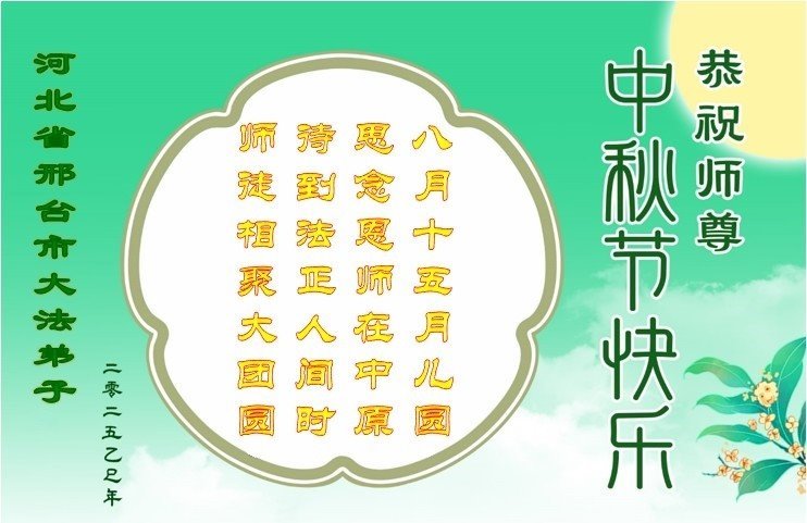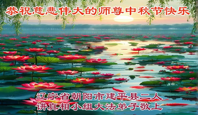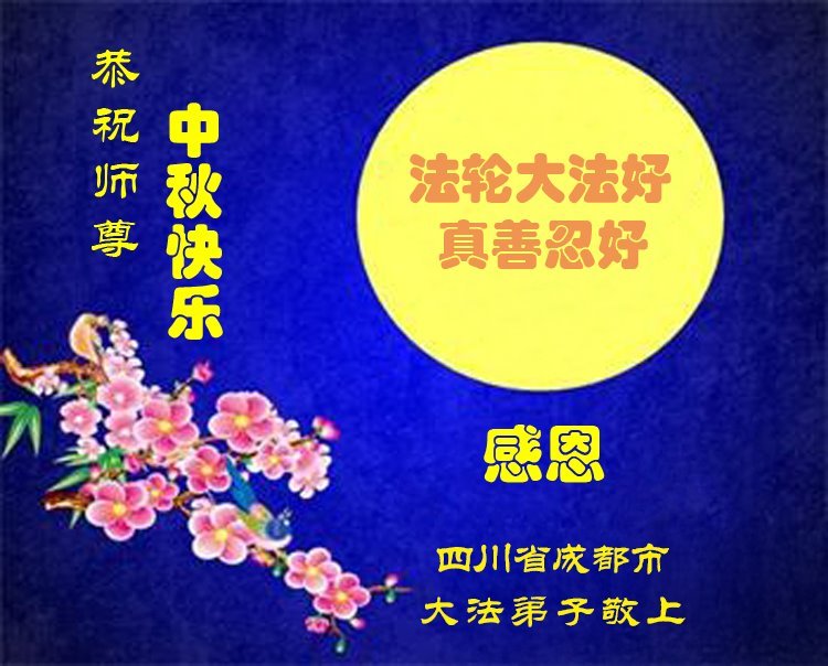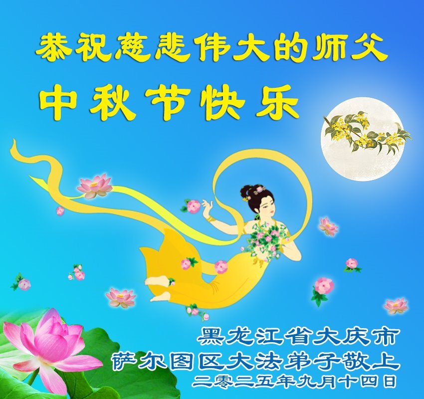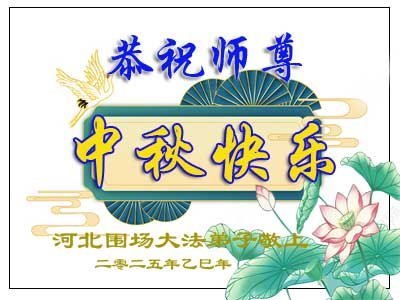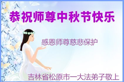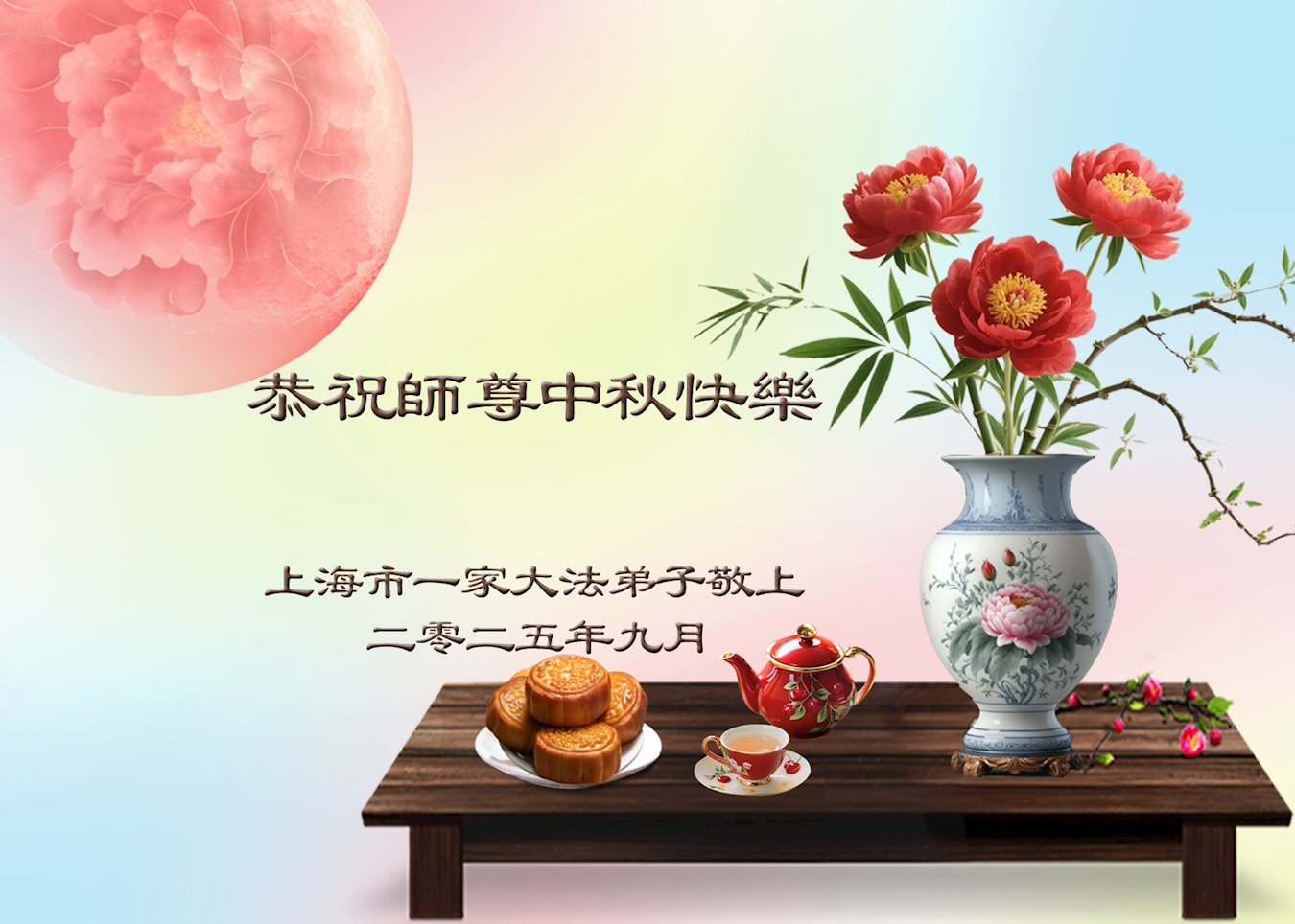 中秋佳节即将到来,在此祝愿李大师中秋快乐!愿中国人尽早抛弃邪党,过上真正属于人类的正常生活。愿大法弟子遭受的迫害尽快结束,能够正常的修炼,从而更好的福益于全社会、全人类。