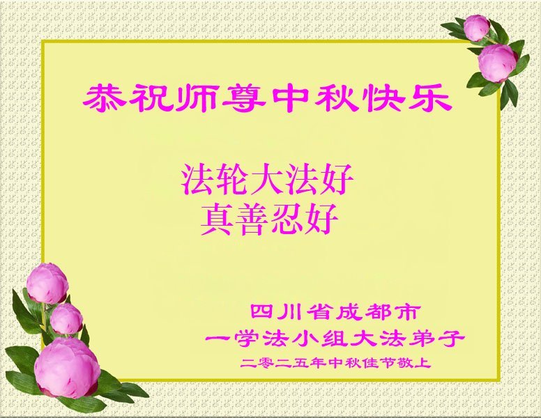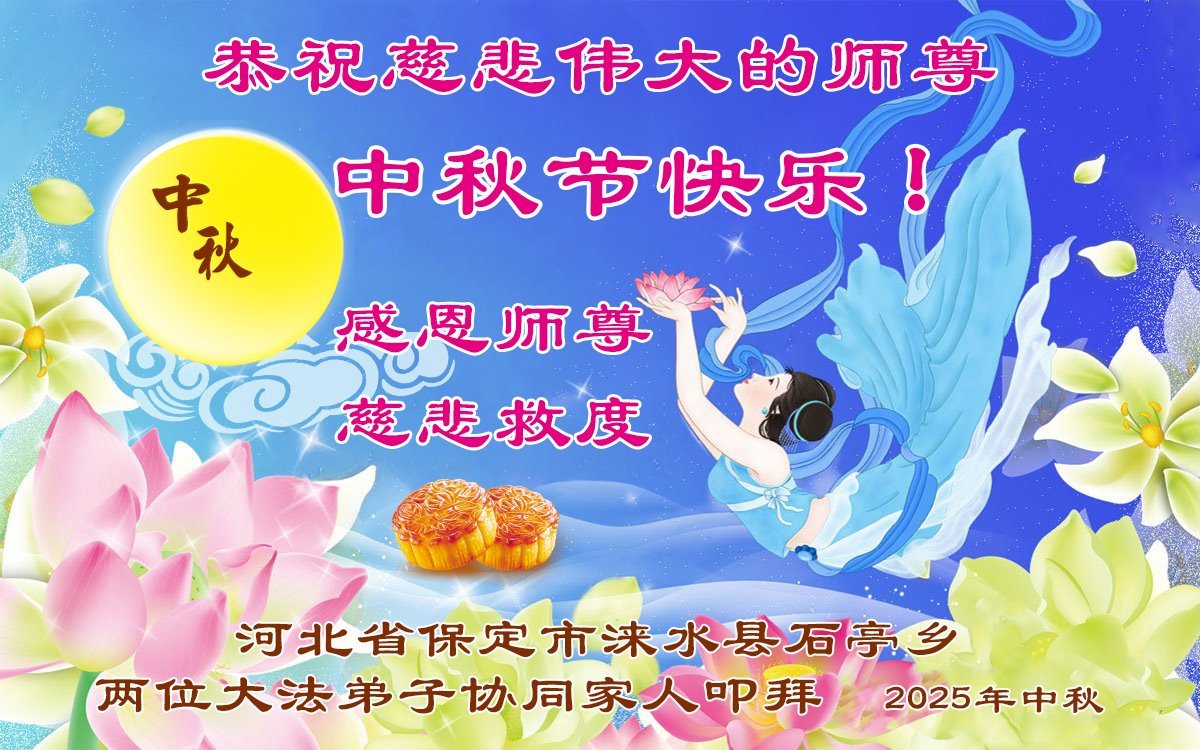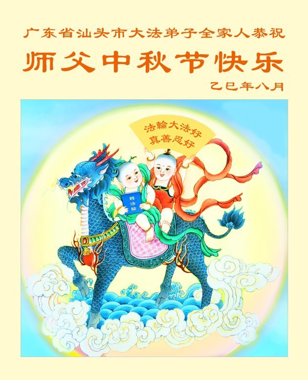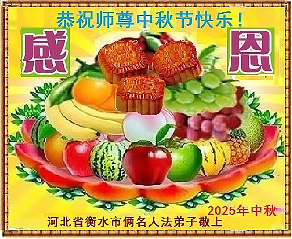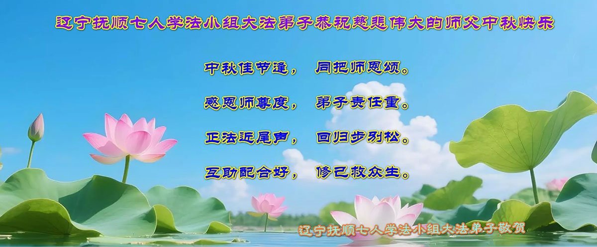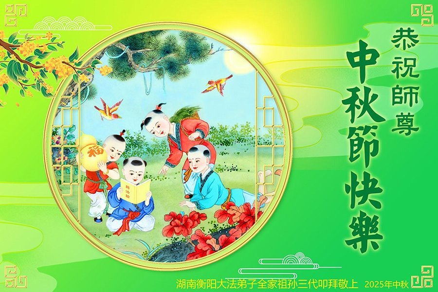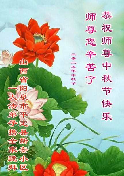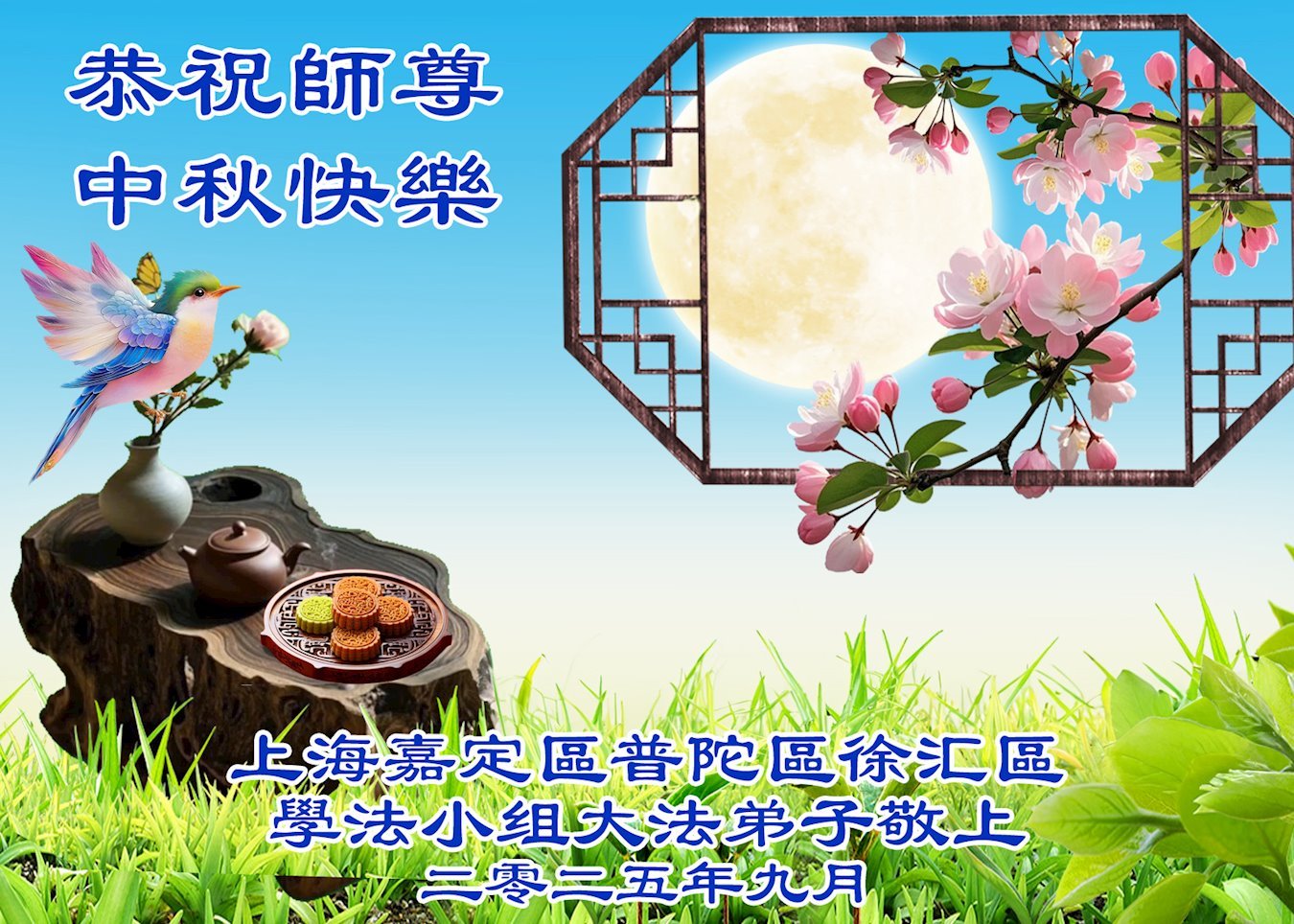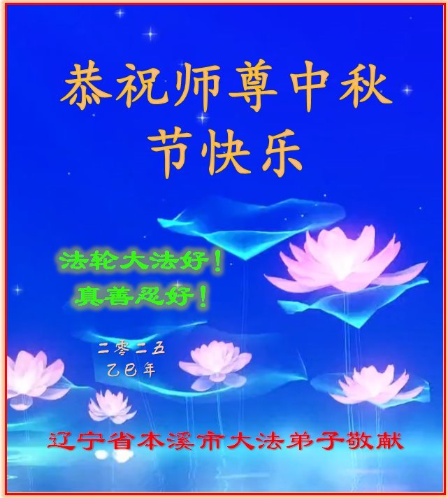 中秋佳节即将到来,在此祝愿李大师中秋快乐!愿中国人尽早抛弃邪党,过上真正属于人类的正常生活。愿大法弟子遭受的迫害尽快结束,能够正常的修炼,从而更好的福益于全社会、全人类。