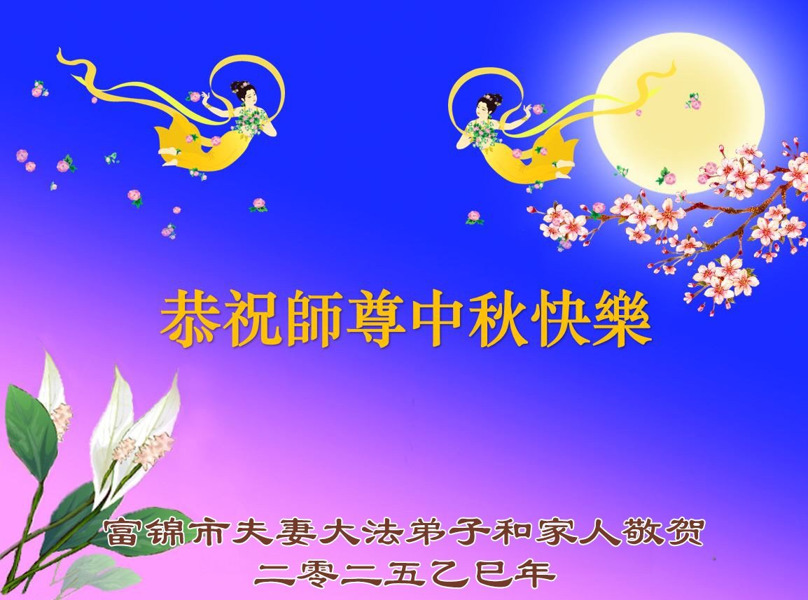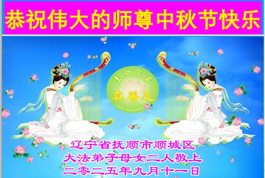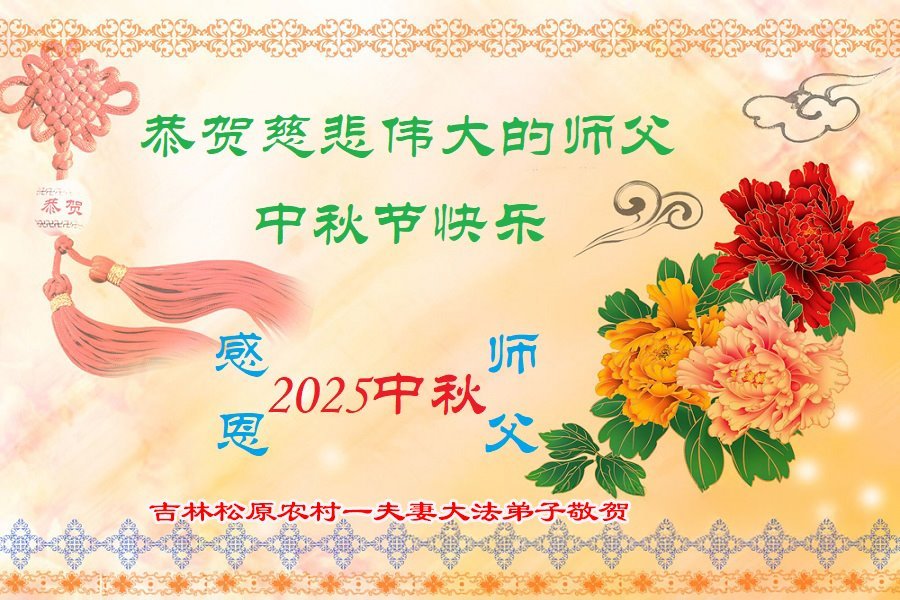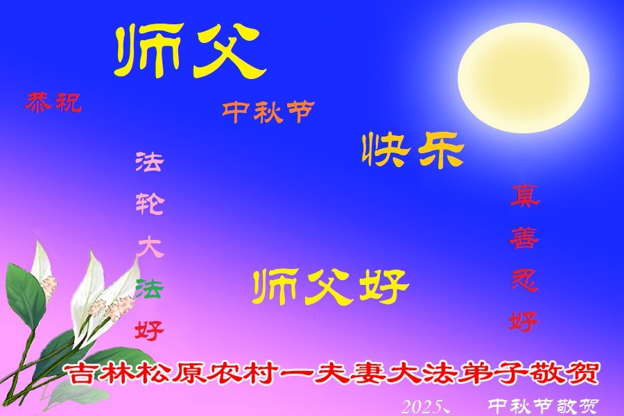 我母亲是大法弟子,我虽未修炼,却相信大法,护身符也不离身,在日常生活中也有颇多的受益,在此中秋佳节之际,我和妻子恭祝李师父中秋节快乐!