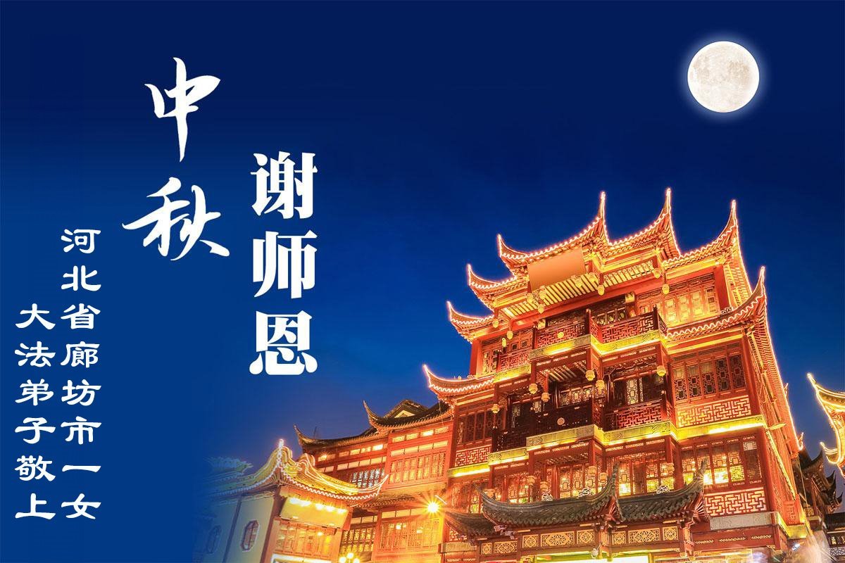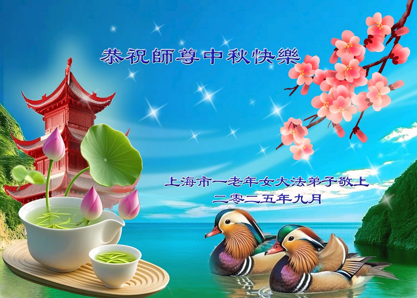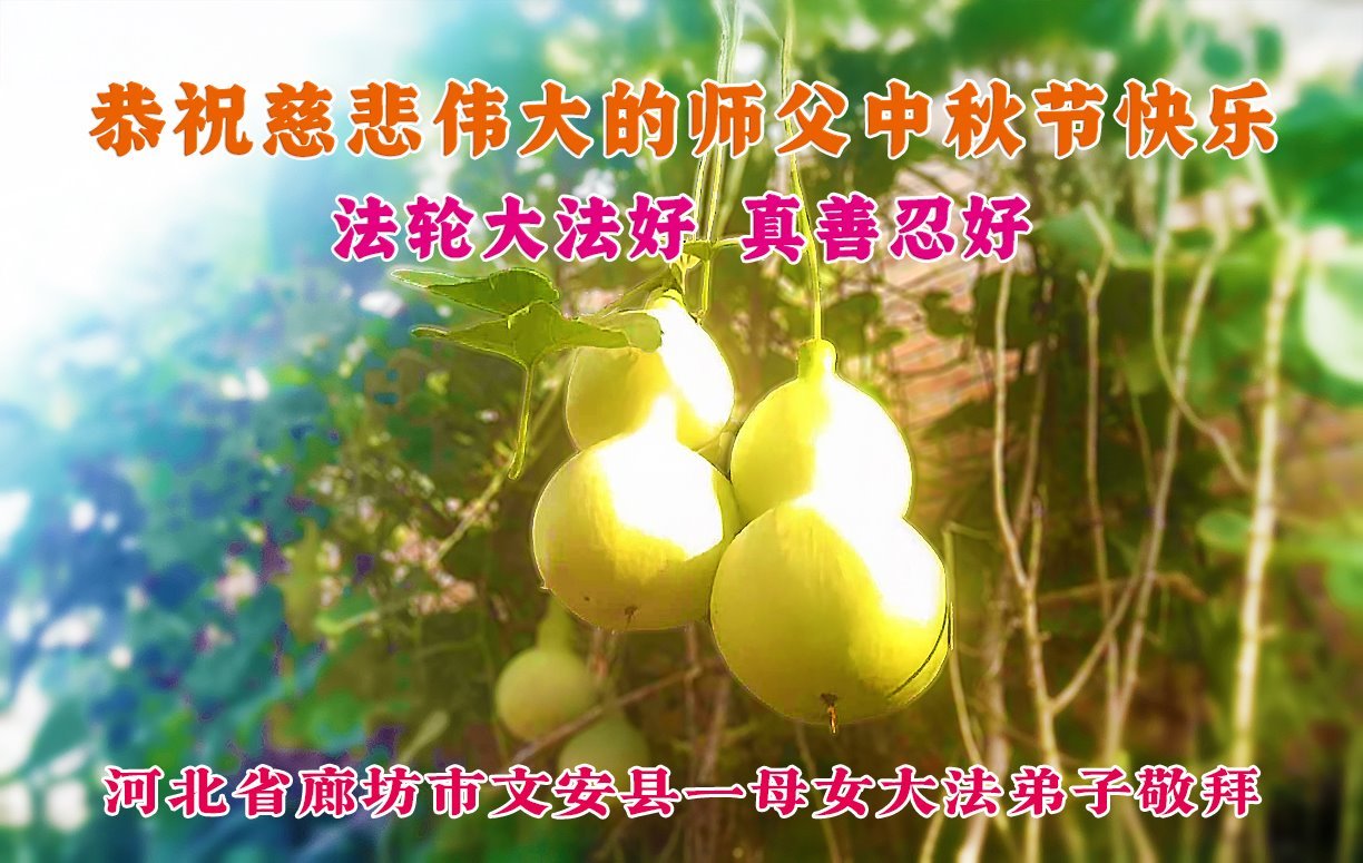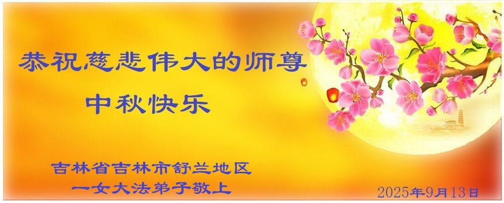在中秋节来临之际,我衷心祝愿慈悲伟大的师父中秋节快乐!我从小就知道法轮大法好,从未怀疑过,从未变过心。长大后,每当自己思想不正确的时候,总能用大法纠正那些坏念头,做个善良的人,这是正法的力量。无论过去、现在、将来,我对法轮大法的心始终不变,坚信法轮大法是正法。