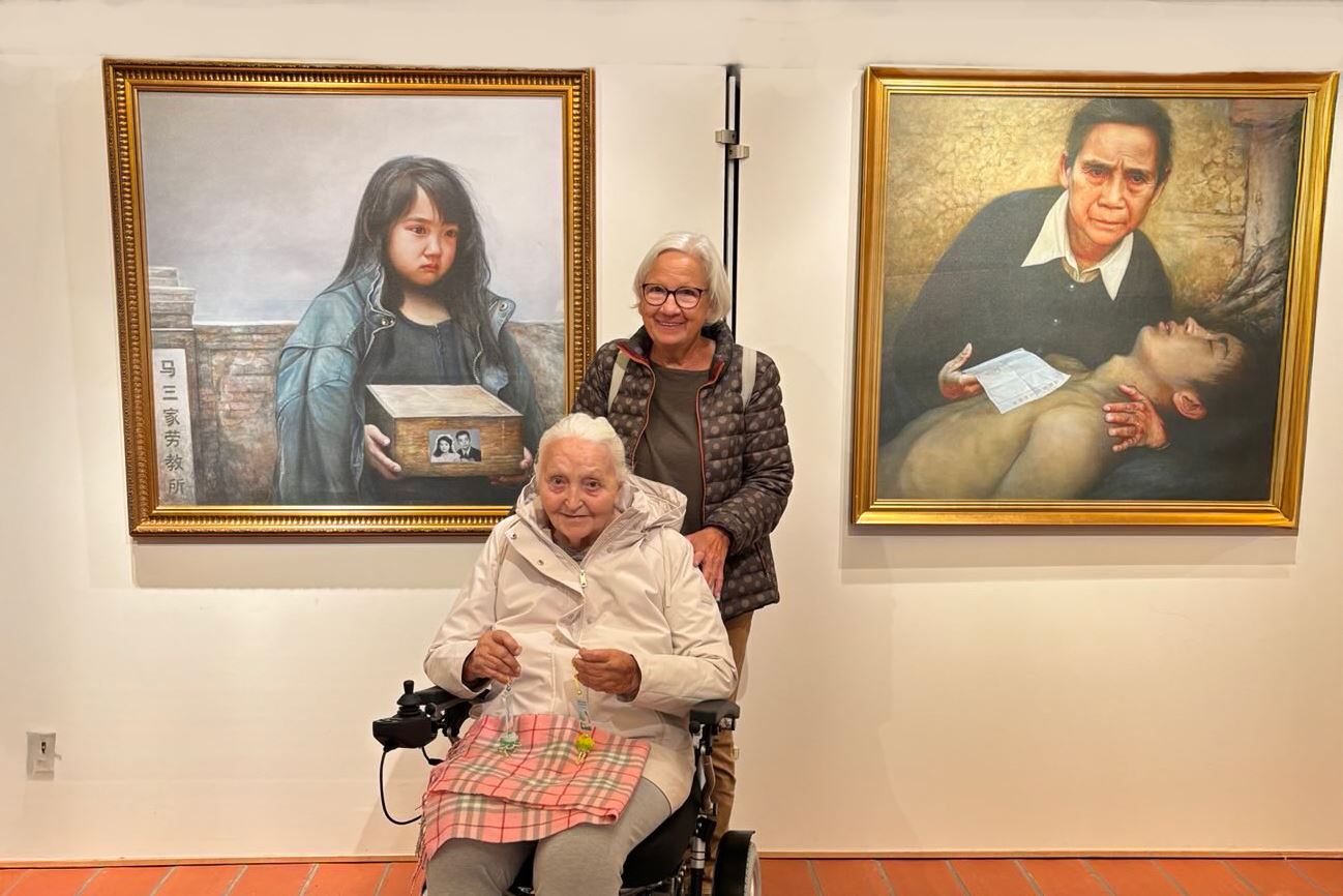 一位十七岁的女学生说,她自己也喜欢画画,是在寻找灵感时偶然走进展厅。她认真地看完每一幅画后说,最触动她的是表现活摘器官罪行的那幅画:“虽然画面悲惨,但从那位受害者身上,我感受到一种力量与光——那种超越痛苦的信念让我很感动。”