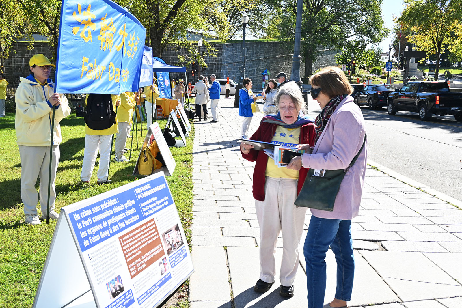 国民议会广场也是魁北克议会大厦(Parliament Building of Quebec)所在地,活动期间议员们也在开会。来自舍布鲁克(Sherbrooke)和蒙特利尔(Montreal)的部分法轮功学员也参加了这次活动,揭露中共跨国镇压,唤起民众关注。