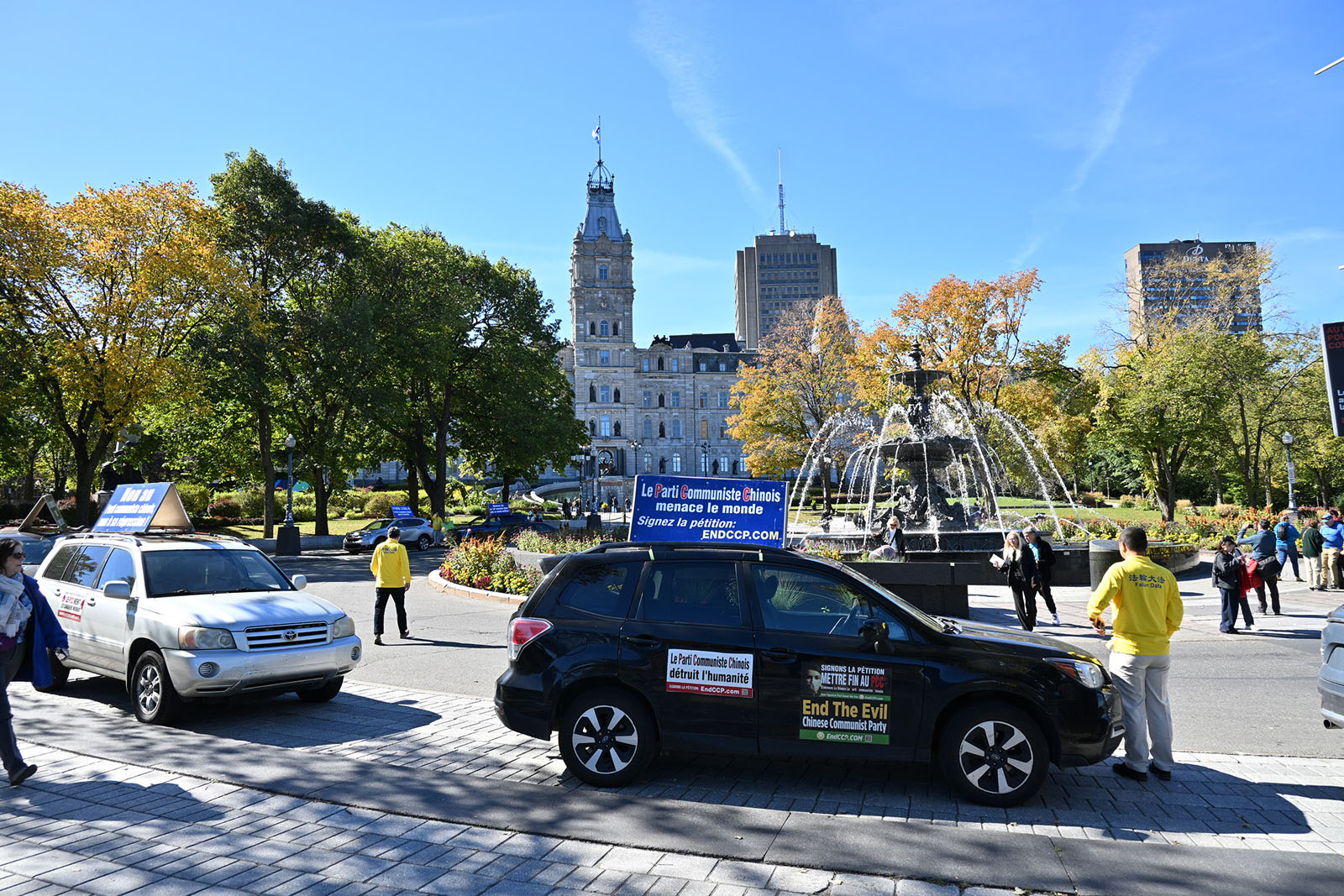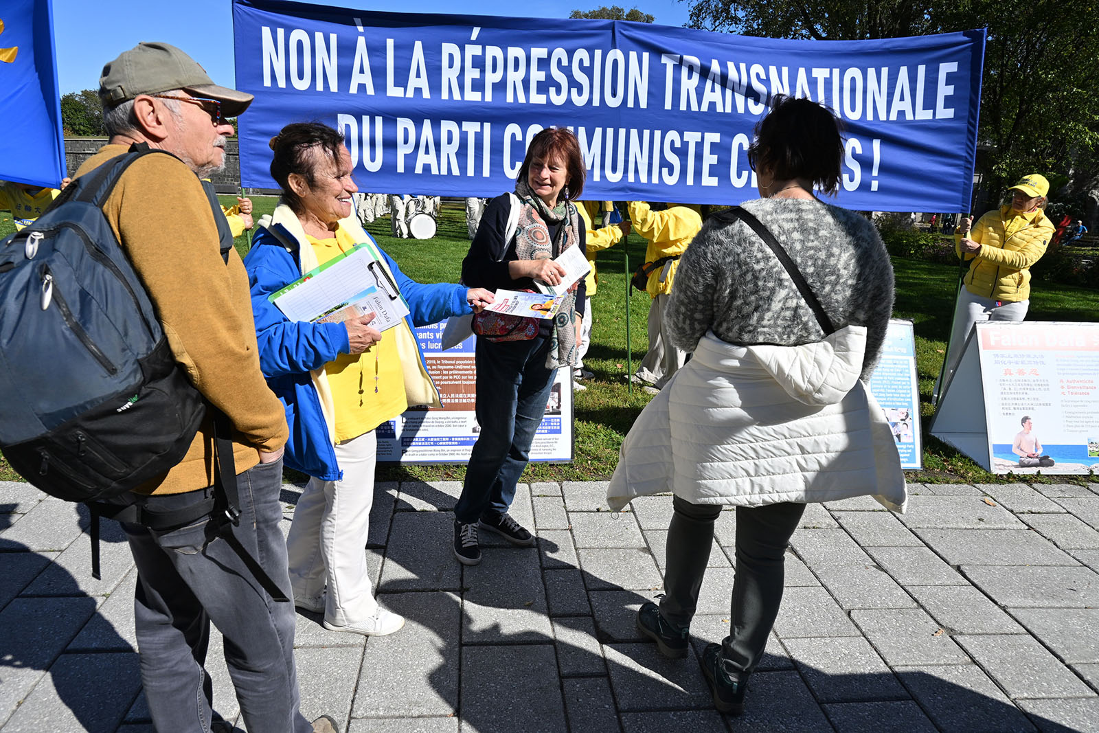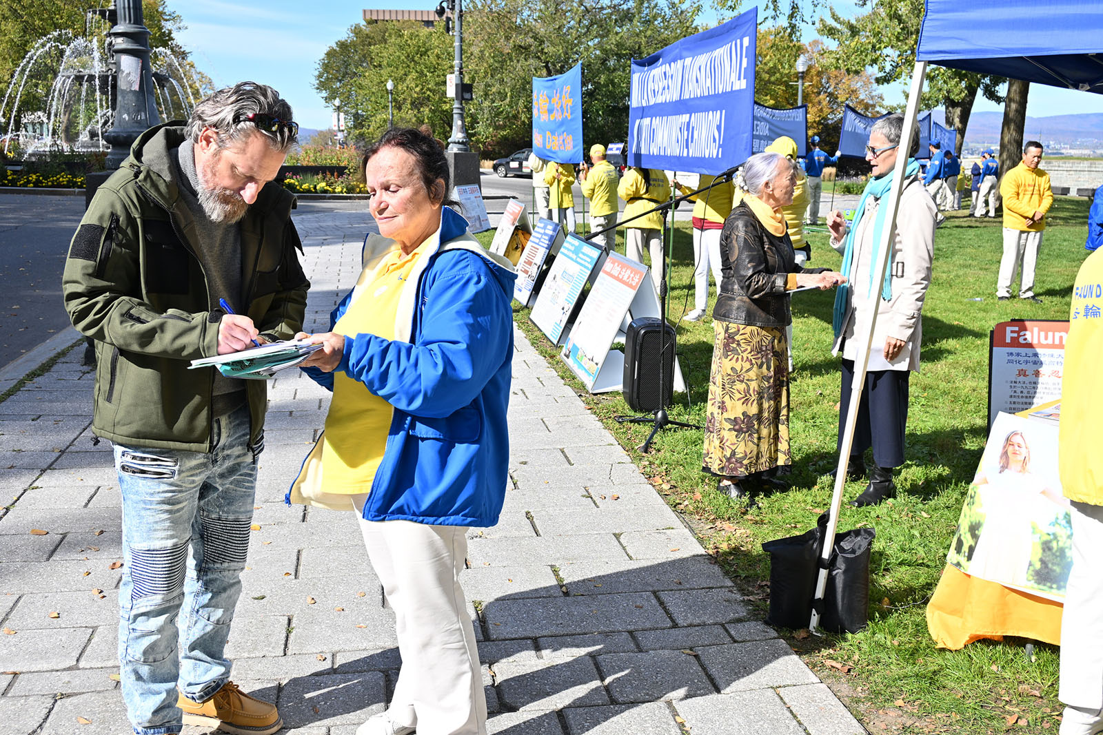 【明慧网二零二五年十月八日】二零二五年十月二日,加拿大魁北克市部分法轮功学员在国民议会广场举行集会,揭露中共跨国镇压,唤起民众关注。学员们演示法轮功功法,展示真相横幅,还举行了揭露中共迫害的汽车游行,并且为制止中共跨国镇压法轮功的请愿书征集签名。一些民众在请愿书上签名时说:“这种干扰不应该被容忍。”
