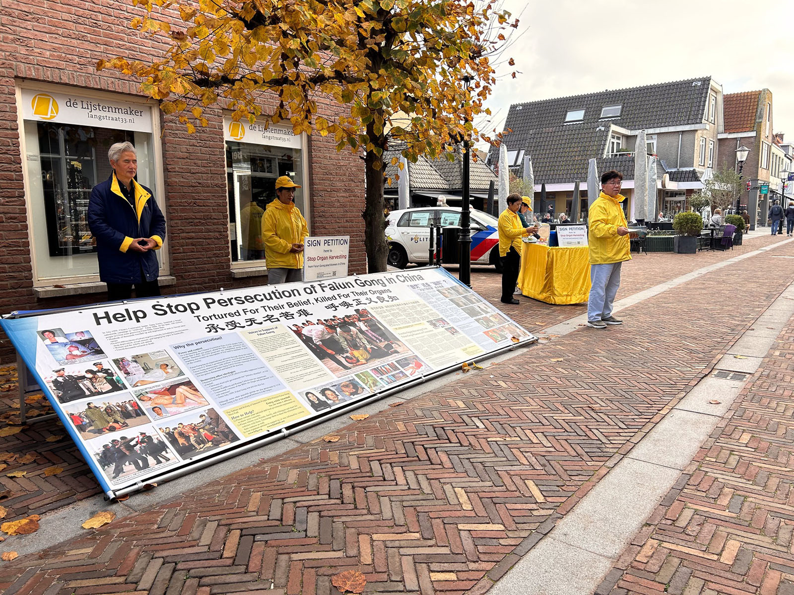 图1~4:二零二五年十一月八日,荷兰法轮功巡回真相点到瓦瑟纳尔举办讲真相活动。