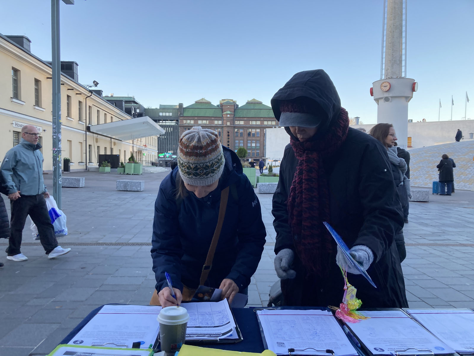 学员告诉克丽丝塔,中共不断向中国人宣传“没有共产党就没有中国”,但在芬兰生活后发现,芬兰人从不会说“没有某个政党就没有芬兰”。说到这里,她忍不住笑了起来。她还表示:“虽然我们家有两个中国亲戚,但我们对中国还是了解太少,并不知道中国人的日常生活是什么样。”她希望学员:“祝你坚强!祝你好运!勇敢地继续说下去。希望我们的签名能带来哪怕一点点帮助。”