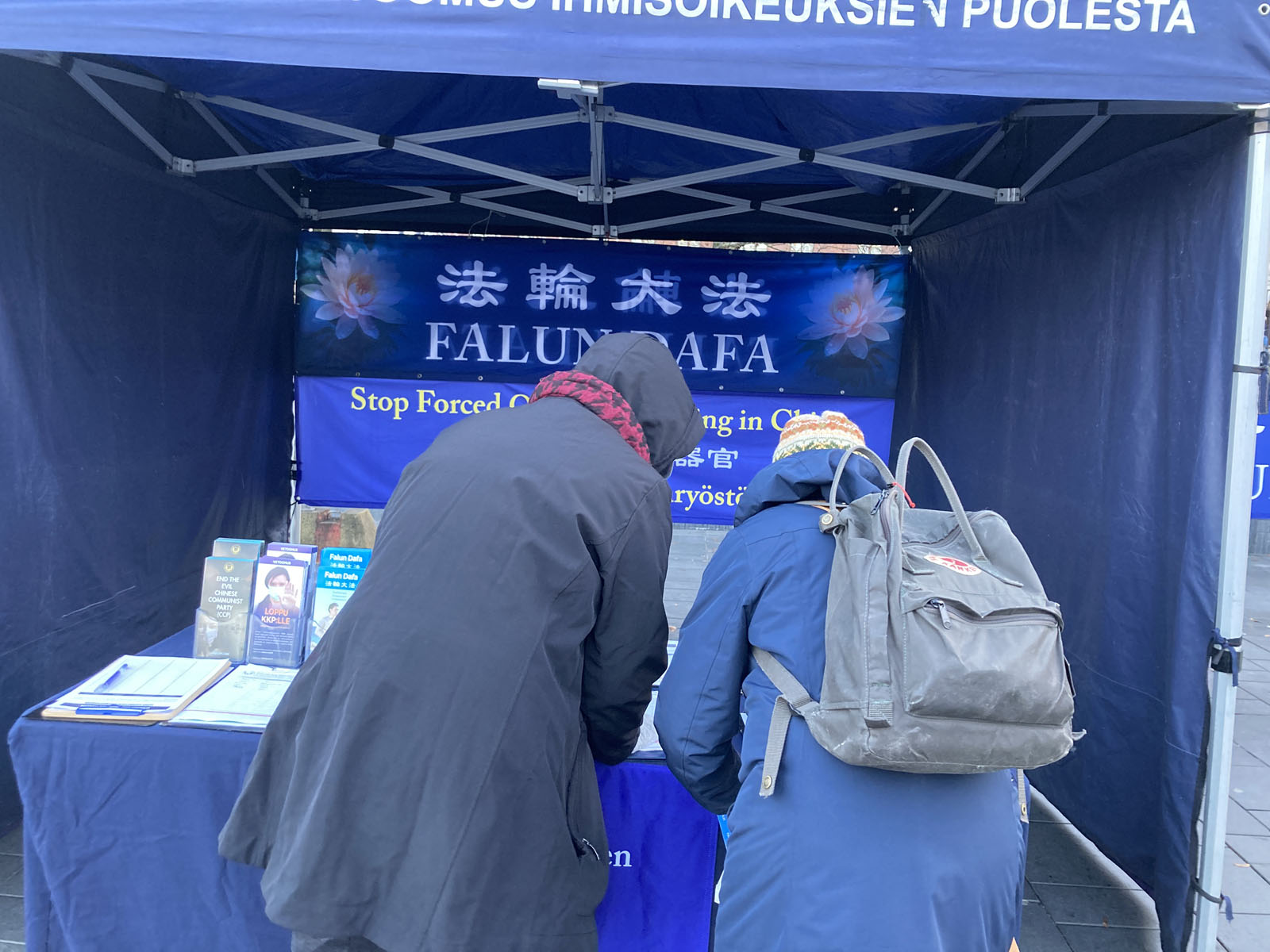 【明慧网二零二五年十一月十八日】二零二五年十一月十五日,当天天气比较冷,气温只有摄氏零度左右,芬兰法轮功学员象往常一样,坚持在星期六于赫尔辛基干比广场(Kamppi)附近举行讲真相活动。学员希望通过平和的方式,让民众了解中共残酷迫害法轮功的真相,包括非法关押、酷刑、集中营以及骇人听闻的活摘器官,并呼吁国际社会关注这场持续了二十六年的暴行。