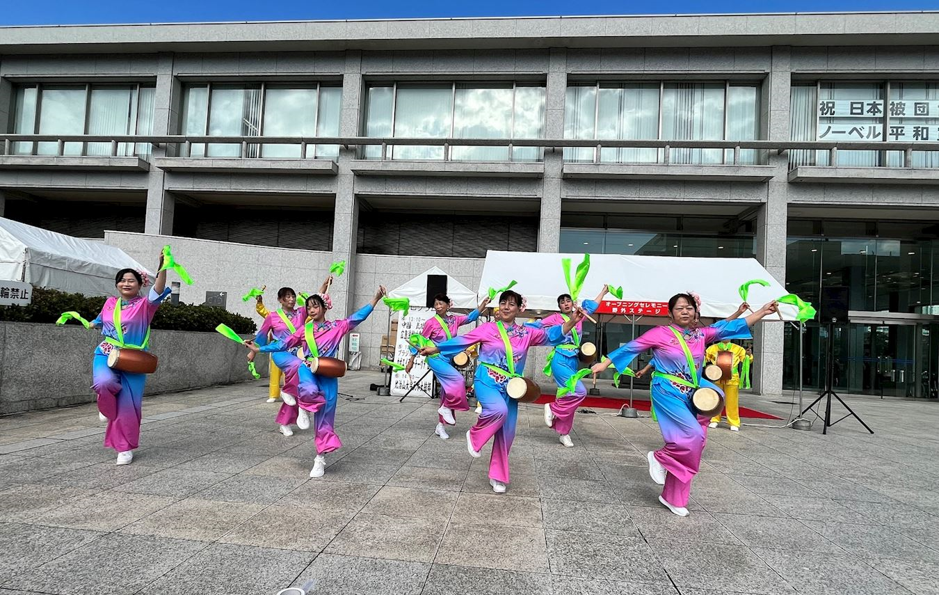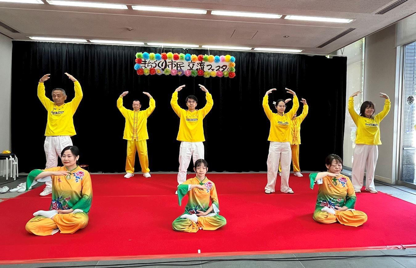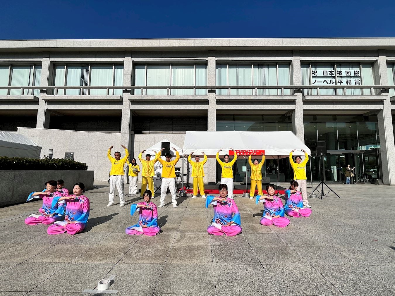 ![]() 图1:十一月十五日、广岛法轮功学员参加“都市建设市民交流庆典”,舞台表演腰鼓舞 |