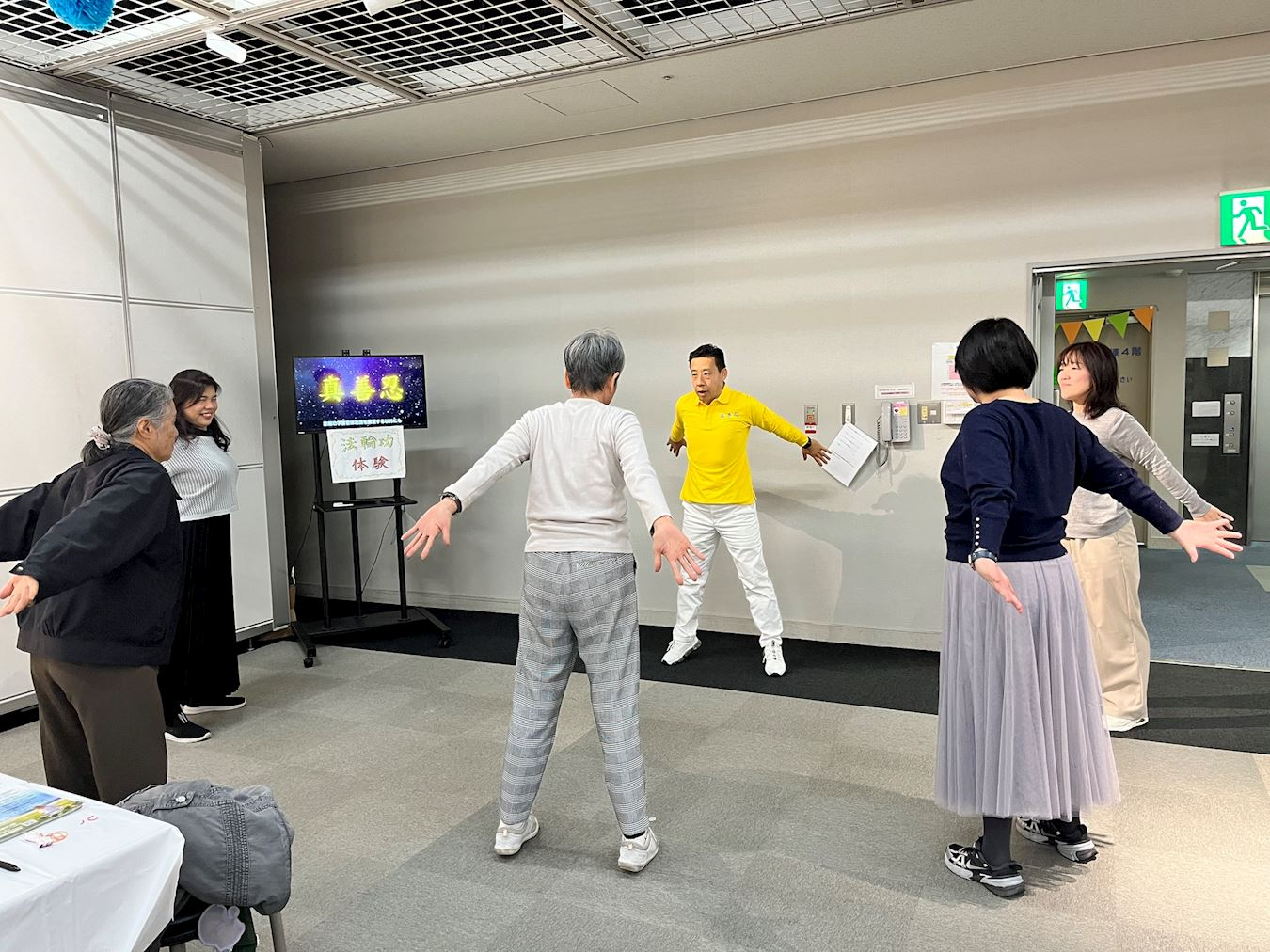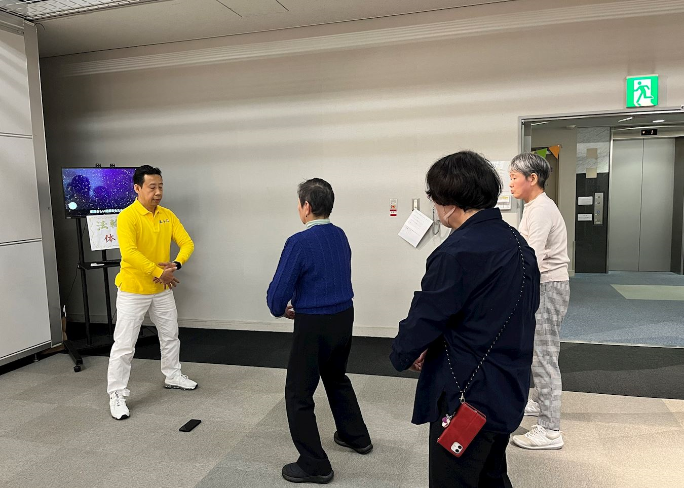 朵姬(Dohi)女士学炼功法之后非常感兴趣。她说:“我原以为功法的动作会很高难,没想到这么简单易学。学炼后全身发热,非常舒服,而且是免费教功,可以放心学习。在丹田处叠扣小腹,也让我感受到此功法的高深,我也想让父亲学。我和下一批的人再学炼一遍可以吗?”她当场决定到附近的炼功点继续学习。