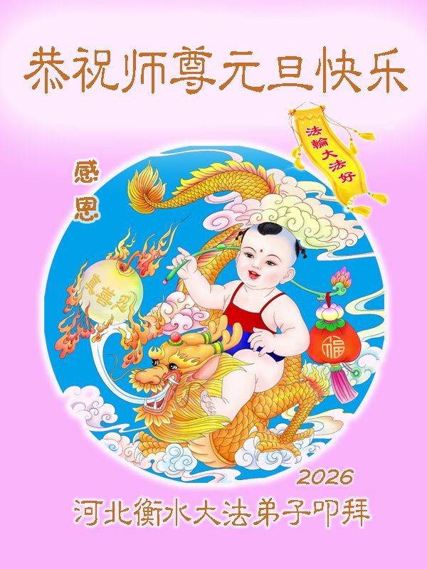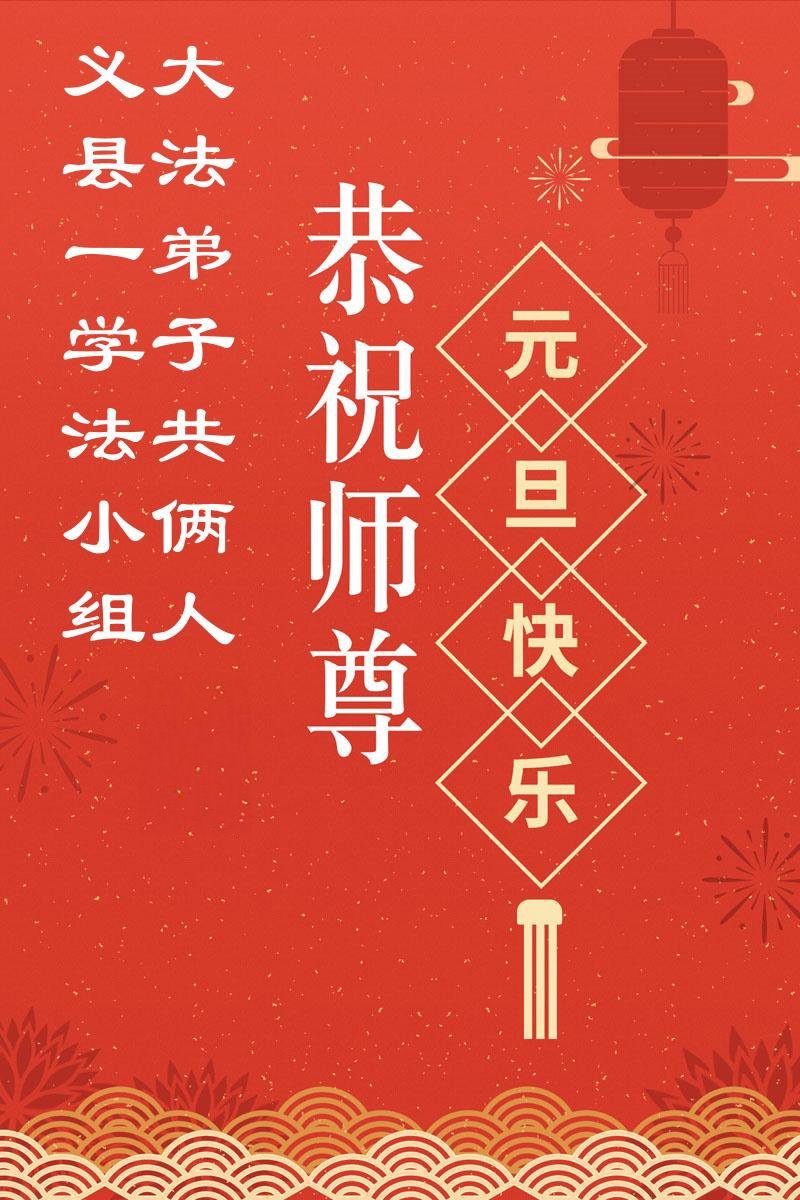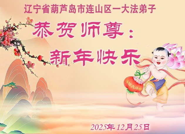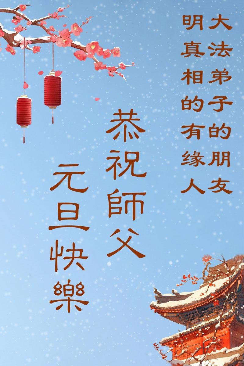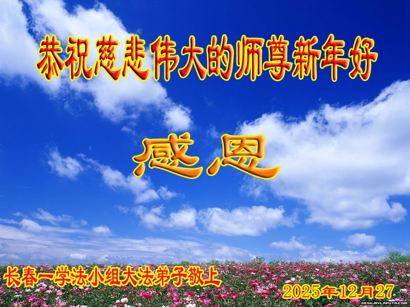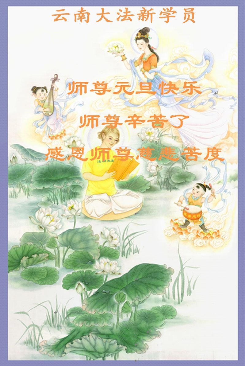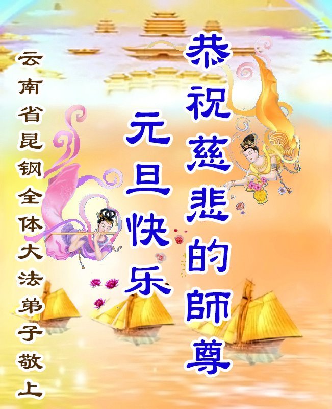 恭祝师父元旦新年快乐!感恩师父慈悲救度!在新的一年里,弟子要学好法,切记向内找是法宝,快去人心、执著,修好自己,做好三件事,让师父少为弟子操劳,多有一些欣慰,兑现誓约,完成使命。跟师父回家!
