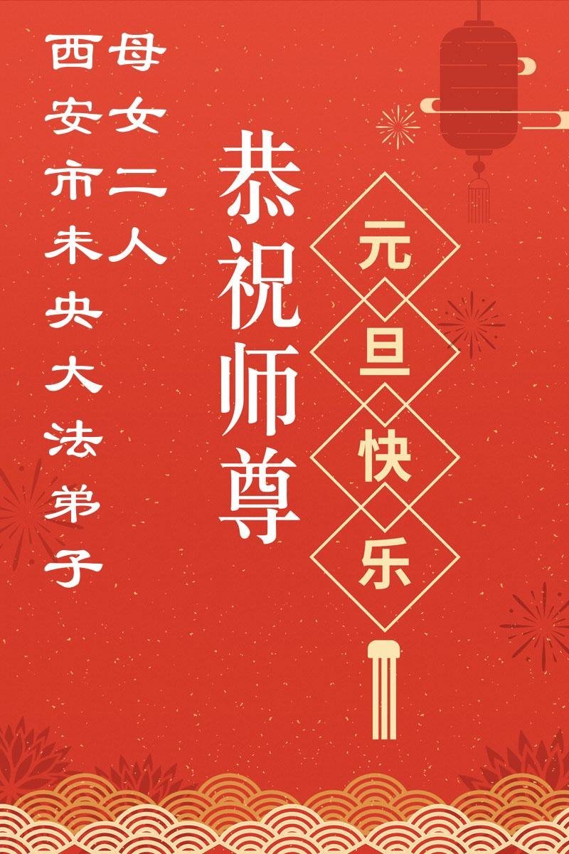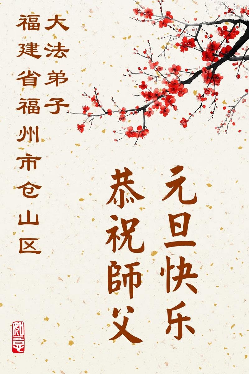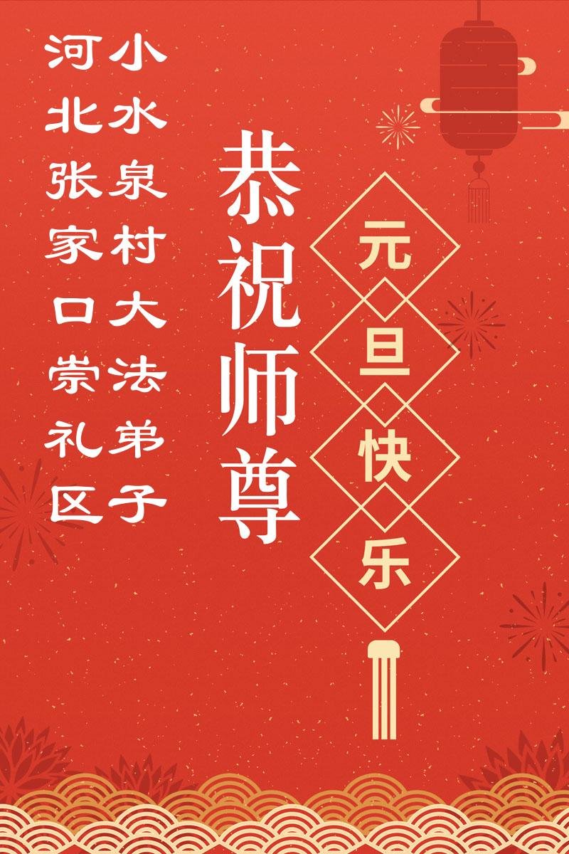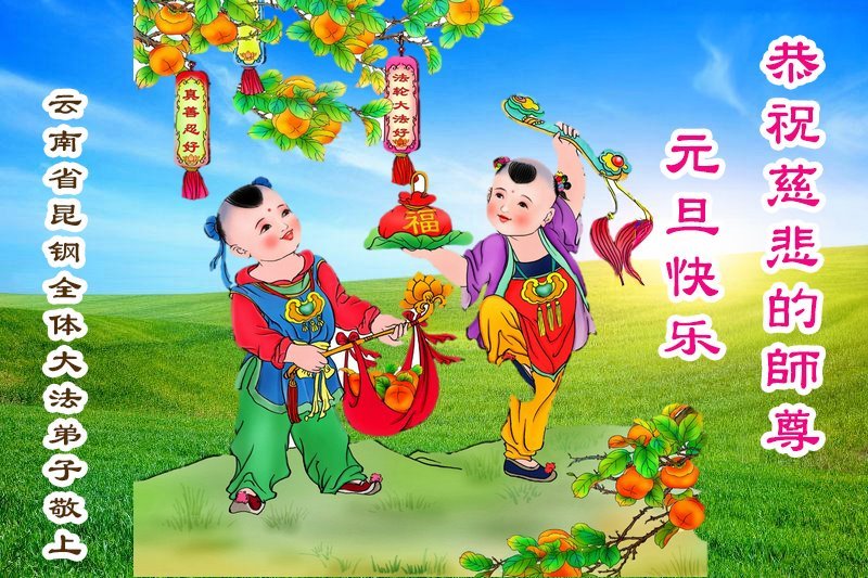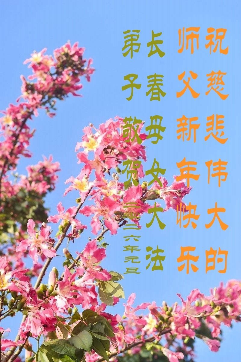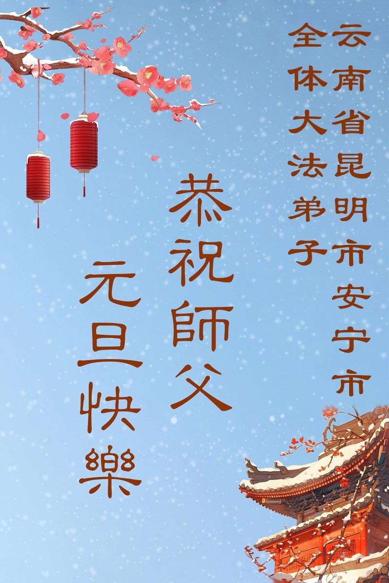 恭祝师父元旦新年快乐!感恩师父慈悲救度!在新的一年里,弟子要学好法,切记向内找是法宝,快去人心、执著,修好自己,做好三件事,让师父少为弟子操劳,多有一些欣慰,兑现誓约,完成使命。跟师父回家!