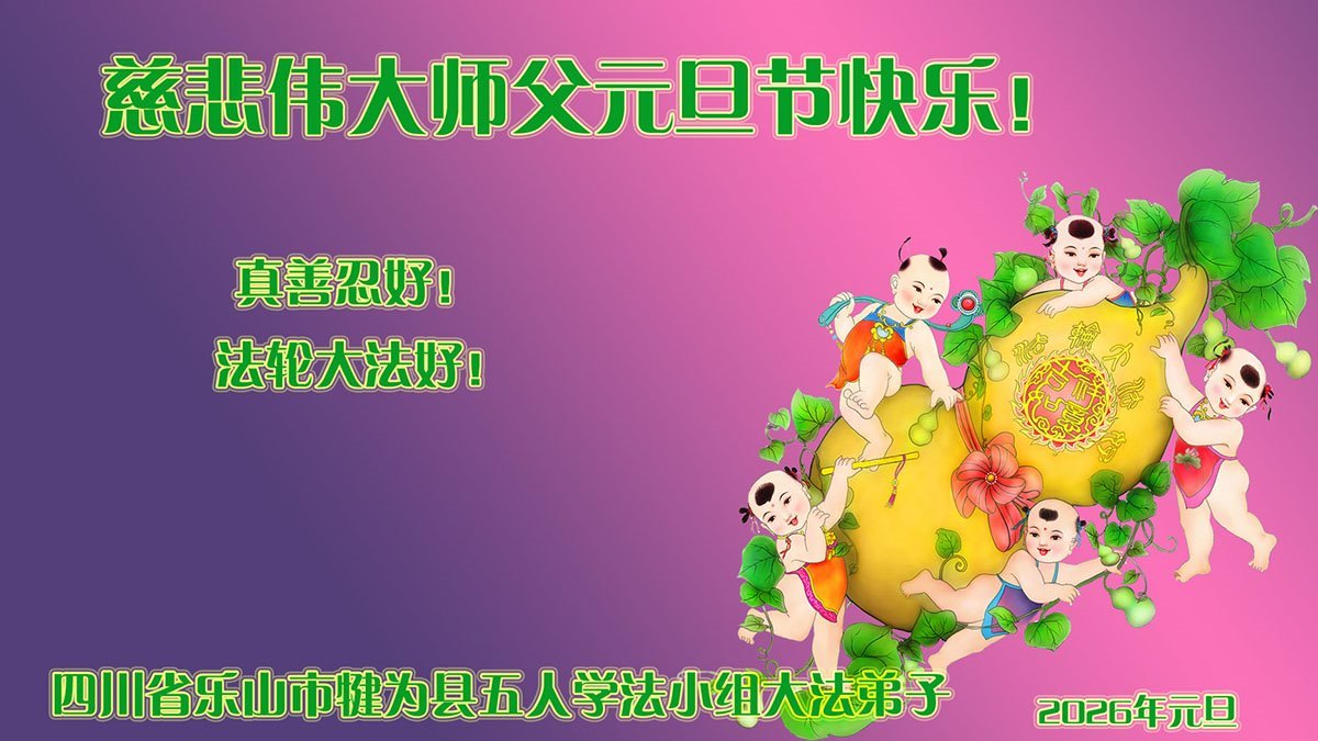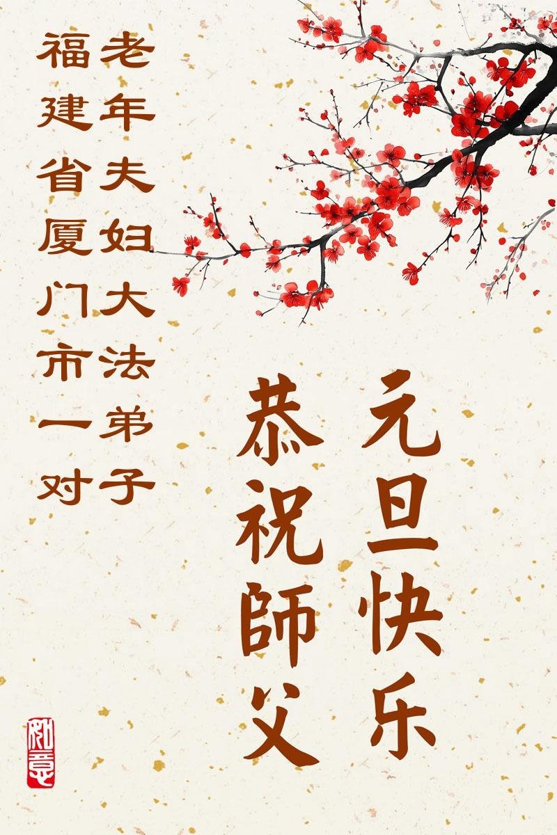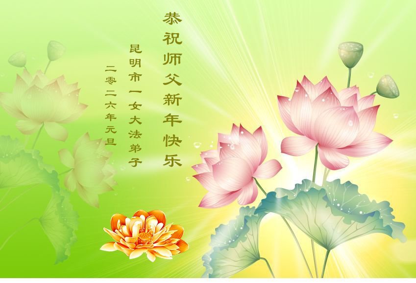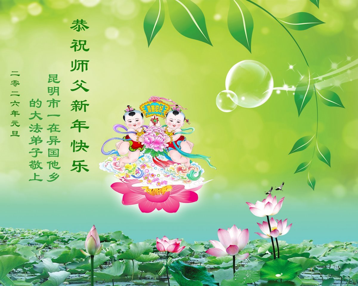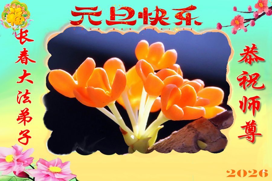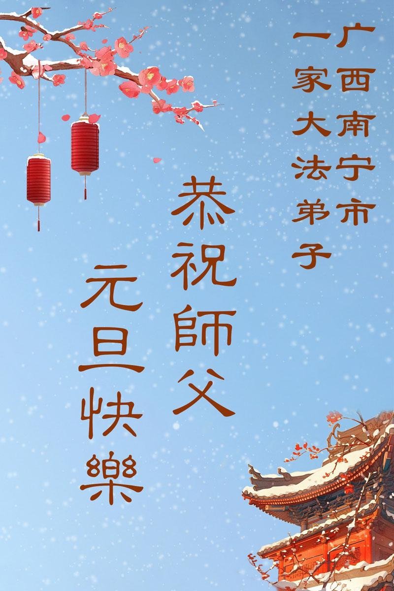 恭祝师父元旦新年快乐!感恩师父慈悲救度!在新的一年里,弟子要学好法,切记向内找是法宝,快去人心、执著,修好自己,做好三件事,让师父少为弟子操劳,多有一些欣慰,兑现誓约,完成使命。跟师父回家!