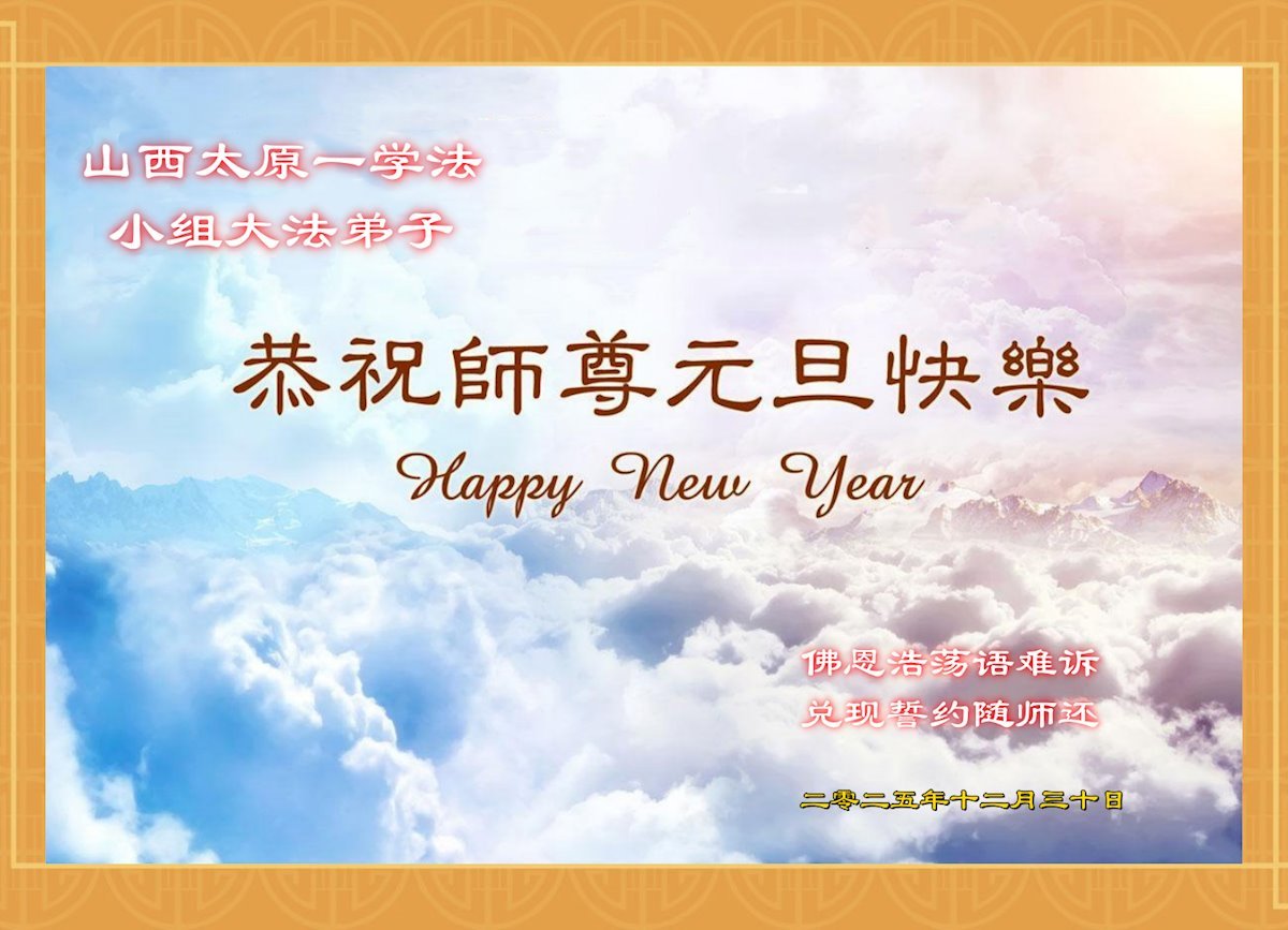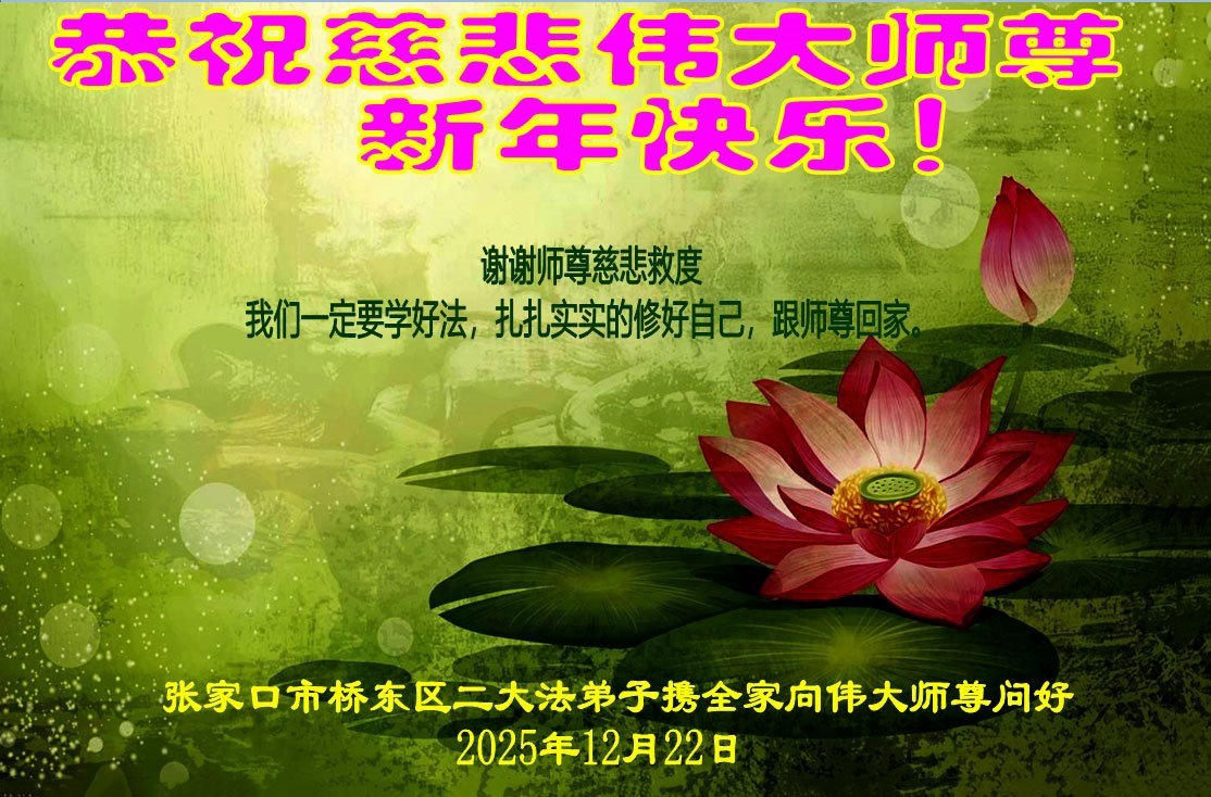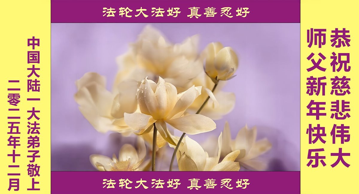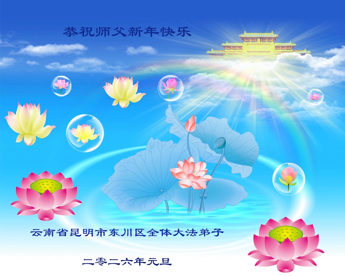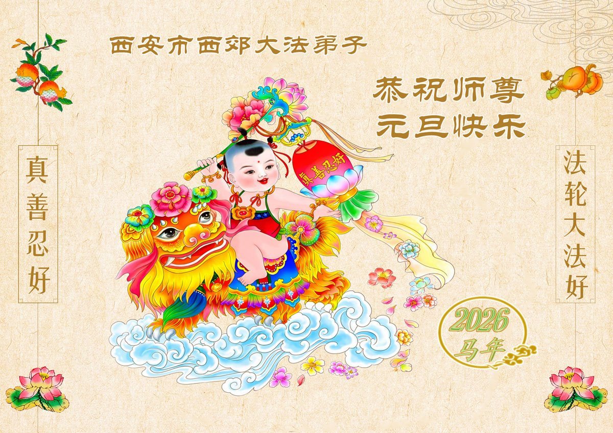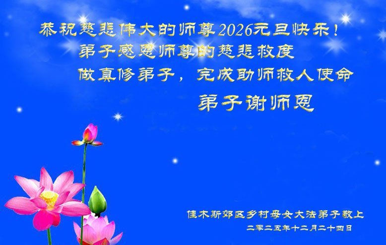 【明慧网二零二五年十二月三十一日】二零二六年新年钟声敲响之际,中国大陆30省、直辖市、自治区大法弟子同拜师尊,恭祝慈悲伟大的师尊新年好!