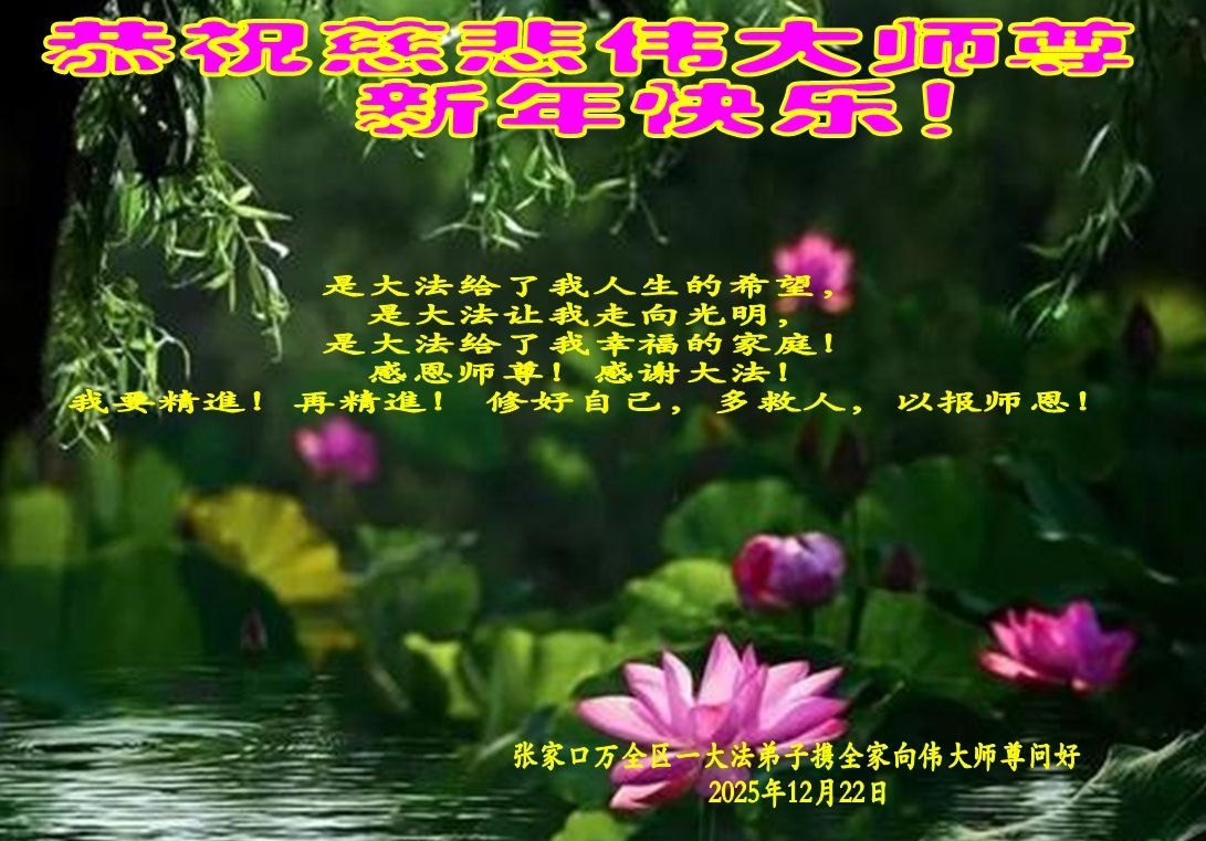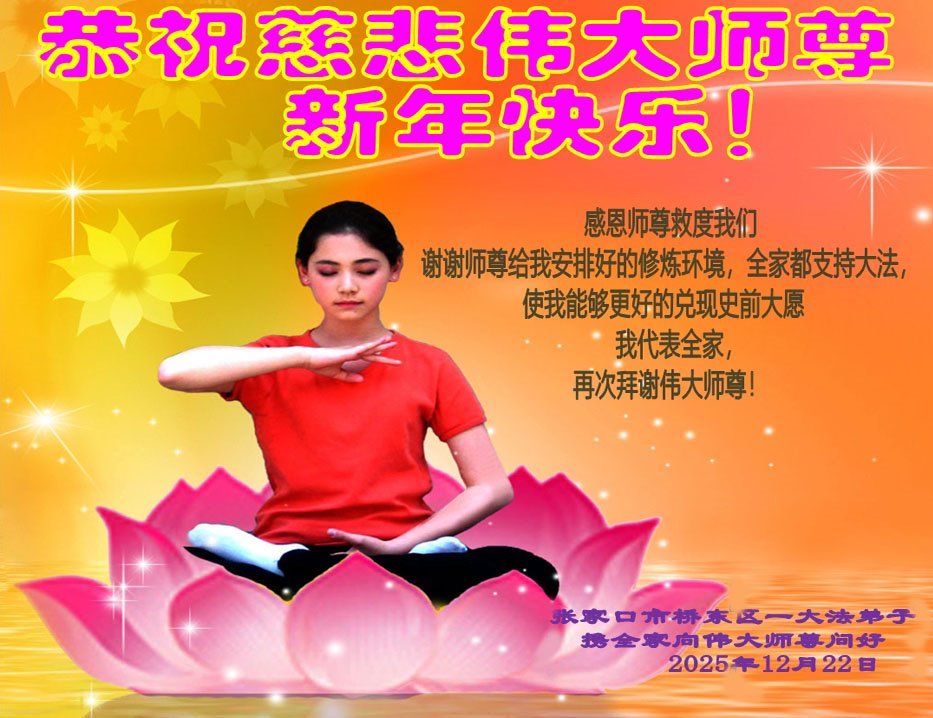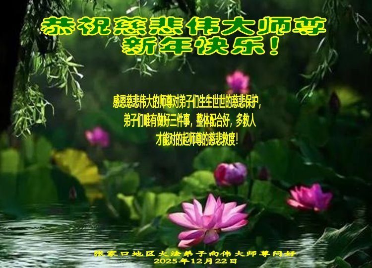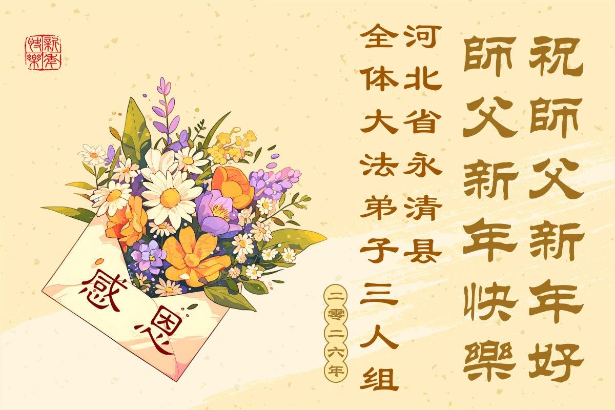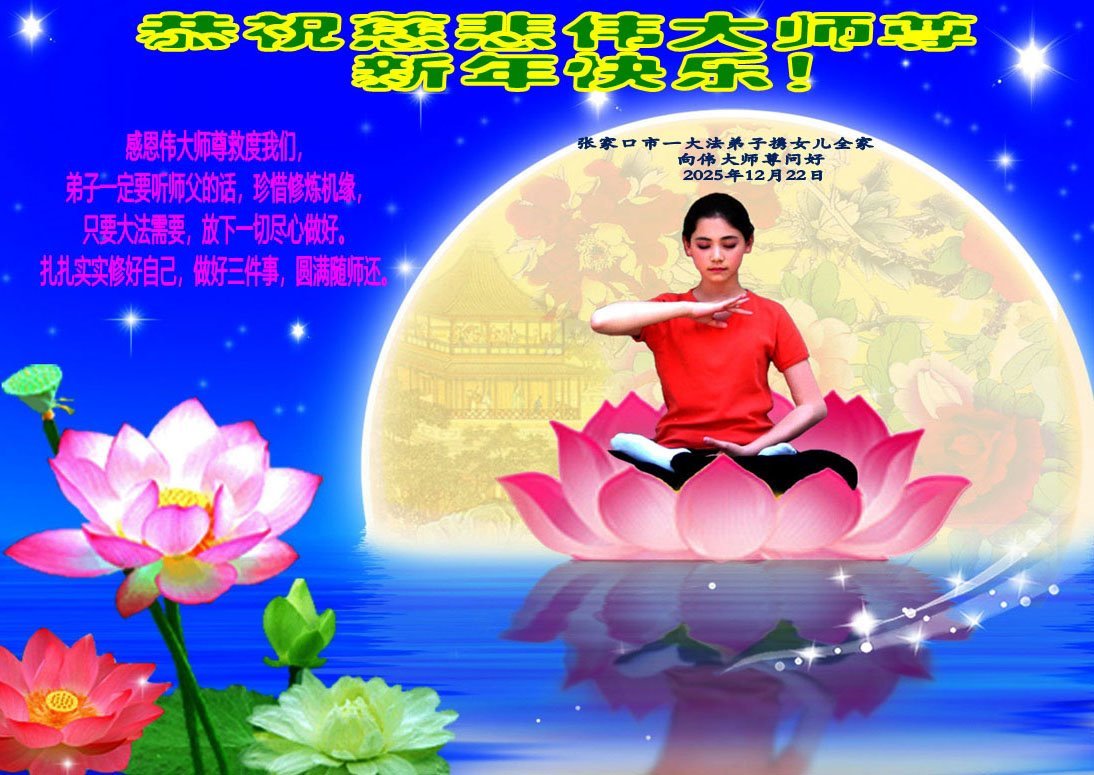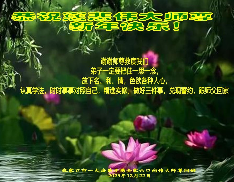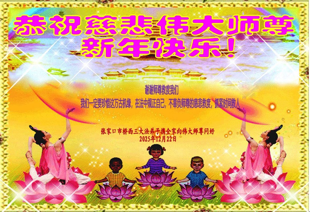 【明慧网二零二五年十二月三十一日】二零二六年新年钟声敲响之际,中国大陆30省、直辖市、自治区大法弟子同拜师尊,恭祝慈悲伟大的师尊新年好!