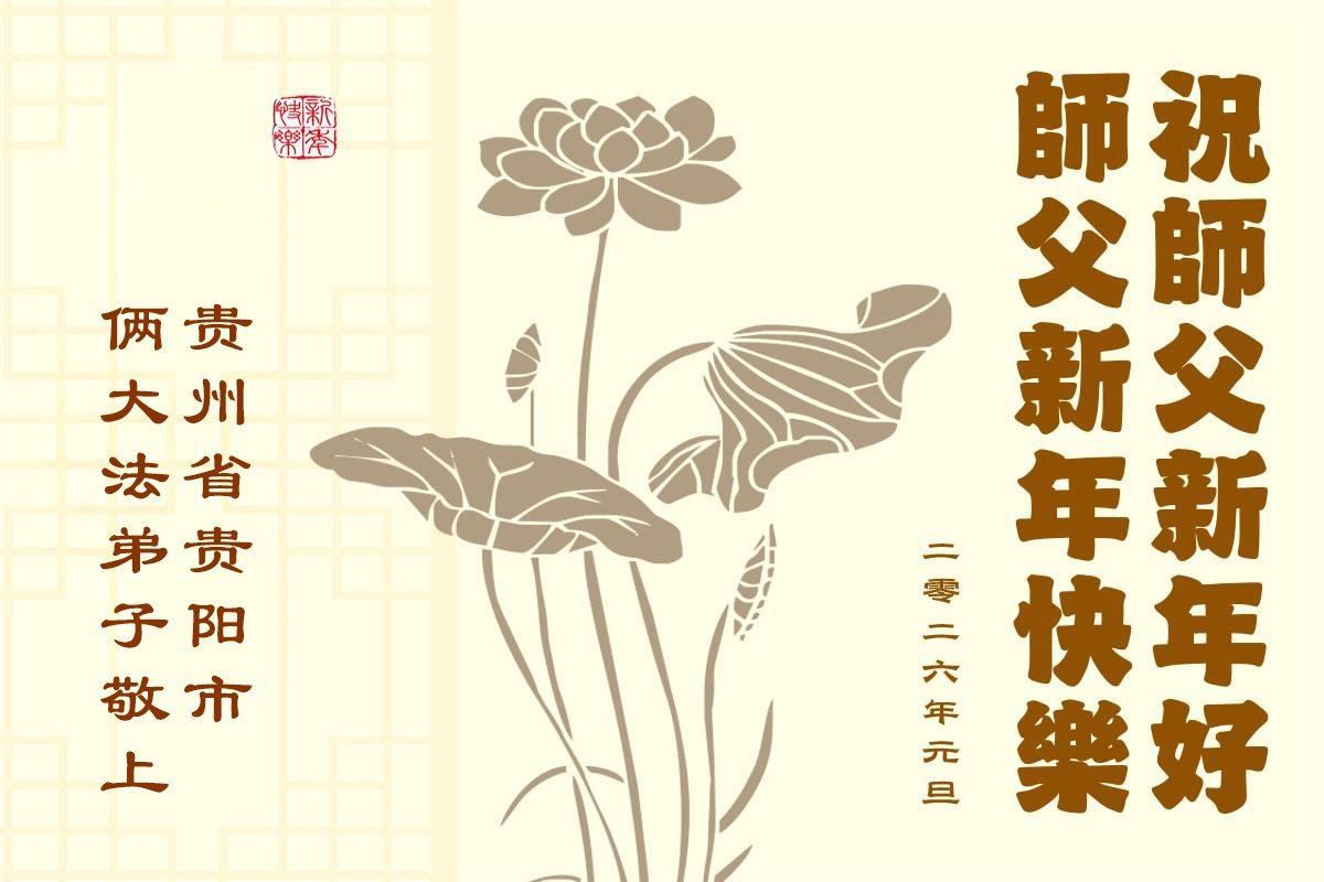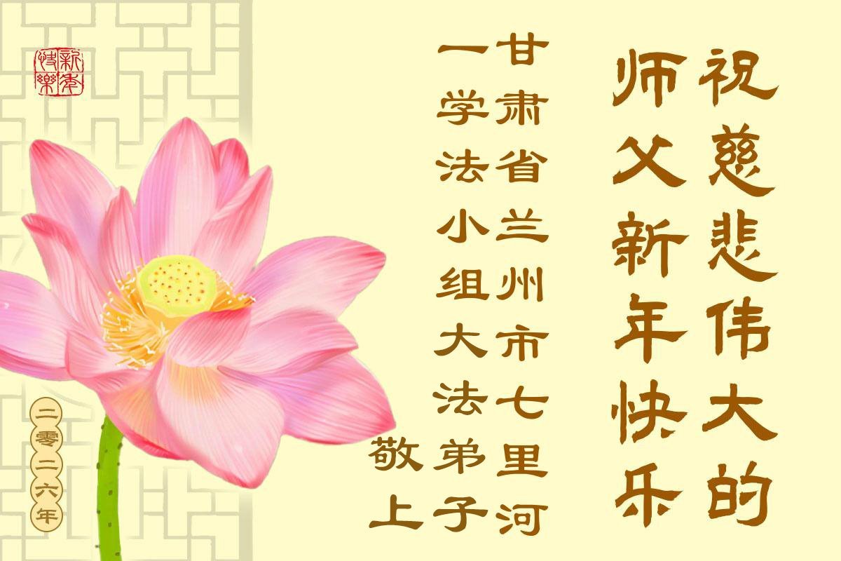 以下是部份来自中国各省、市、地区的学法炼功小组、讲真相小组、资料点大法弟子们敬致师尊的新年贺词贺卡: