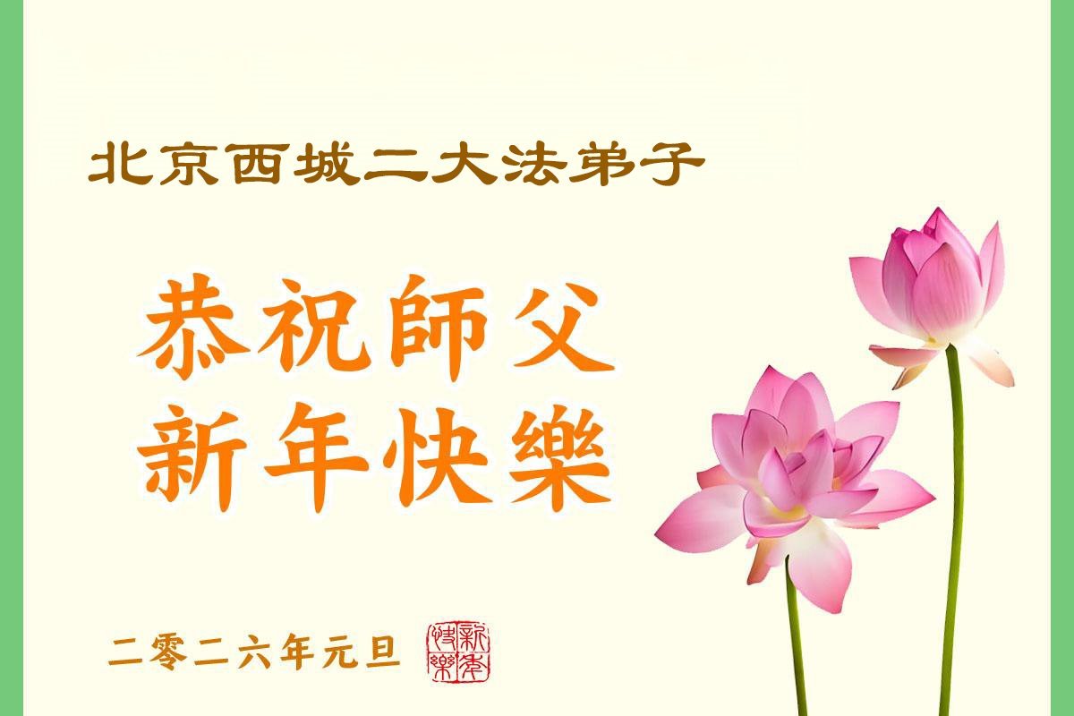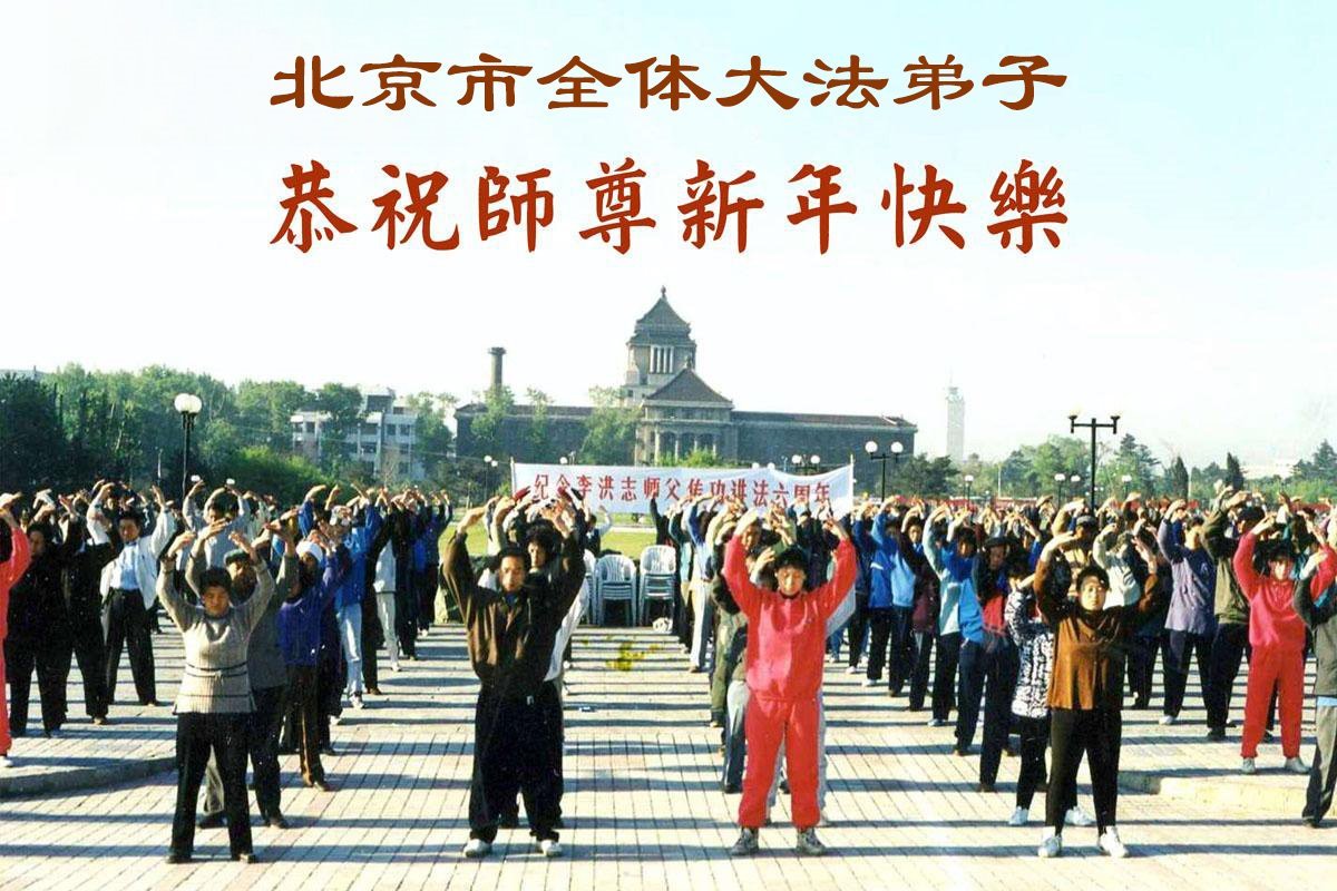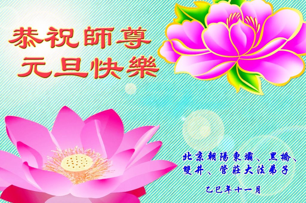 北京大法弟子恭祝慈悲伟大的师尊新年快乐!