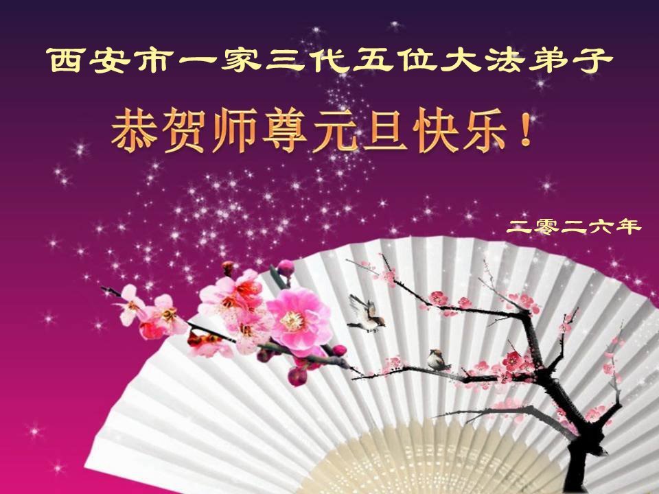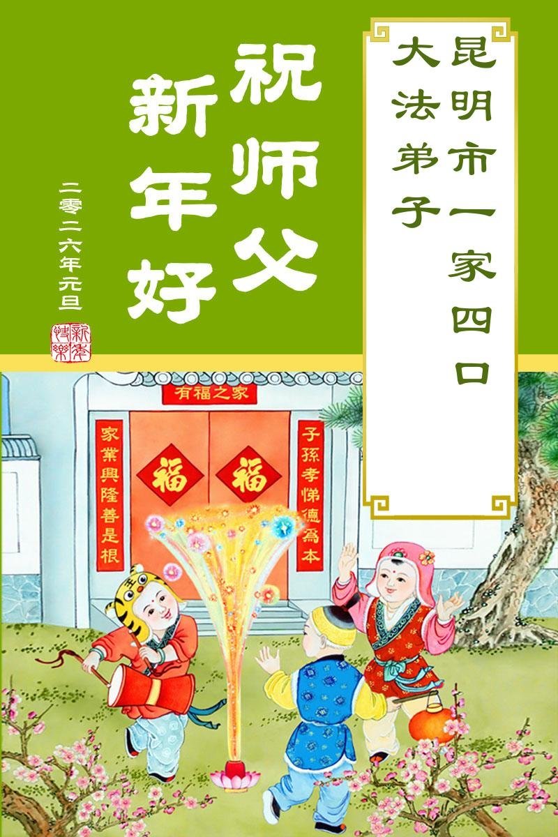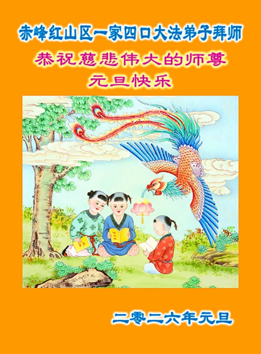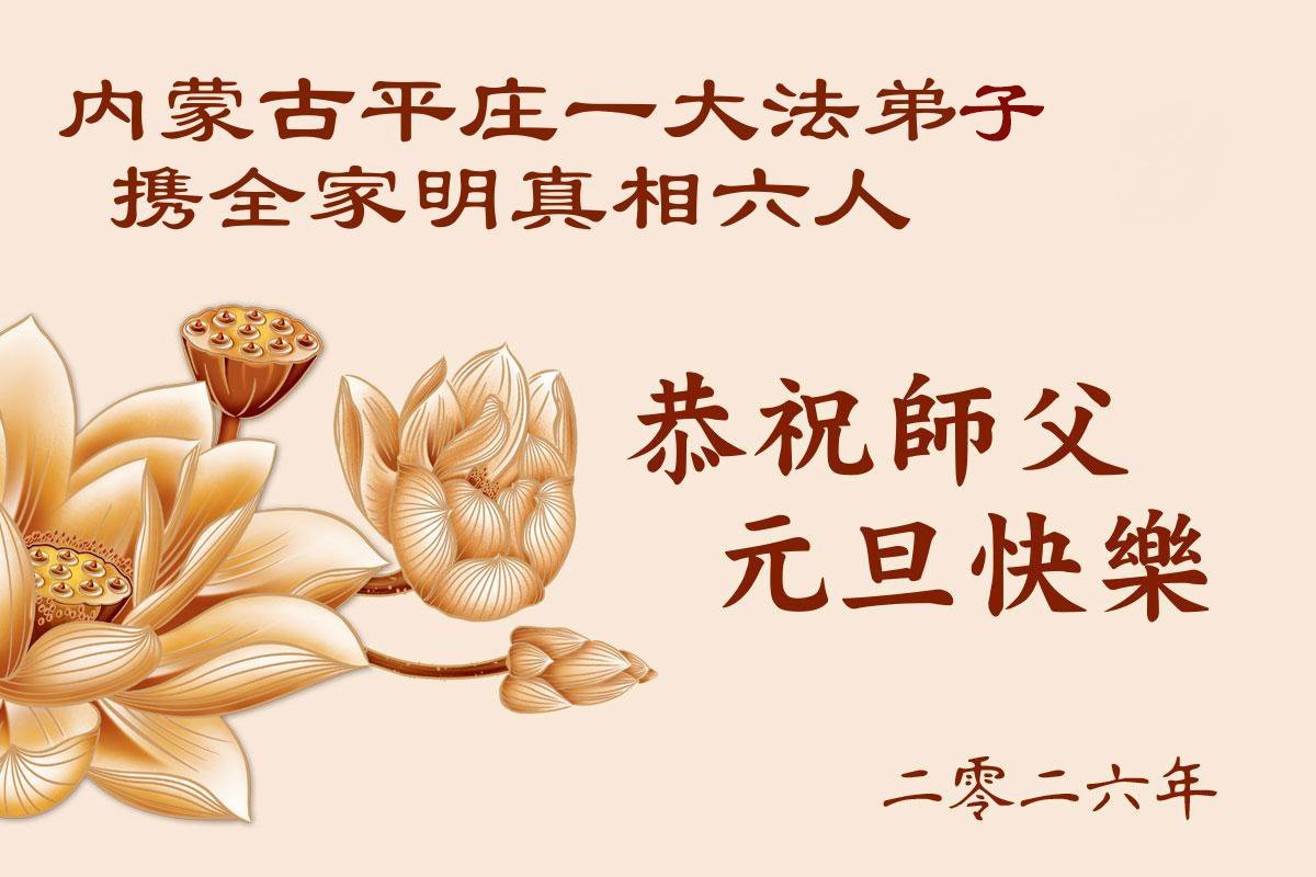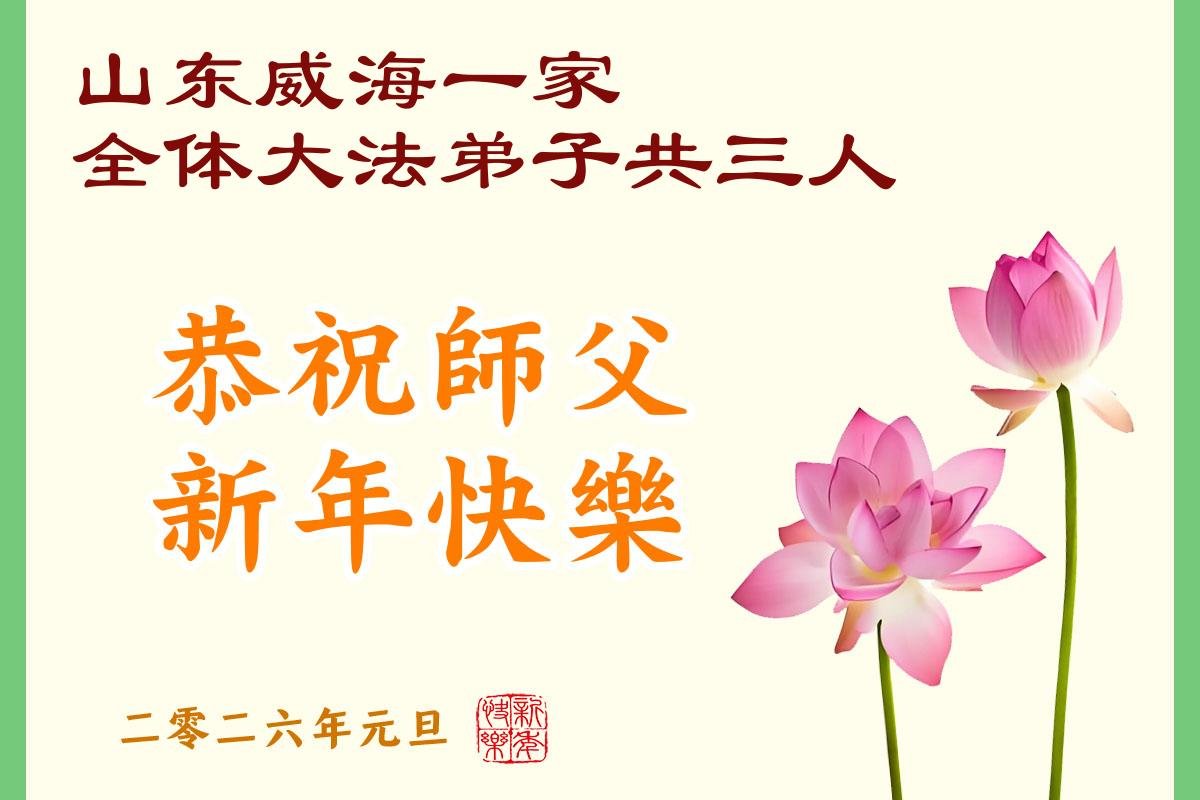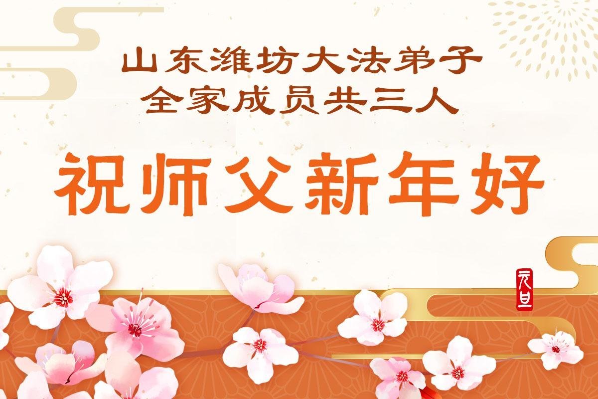 山东省烟台市莱州市一真相小组大法弟子携家人祝师尊新年快乐!