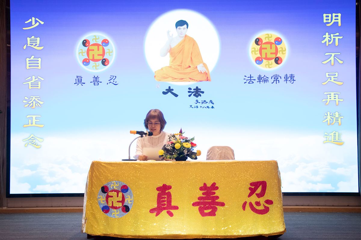 法会上,共有二十一位学员上台交流,分享他们在生活、工作与各项讲真相项目中,按照真、善、忍法理实修向内找的体会。他们谈到如何在不同环境中信师信法、以正念突破困难,并在与同修配合中形成整体,助师救度众生的心路历程。