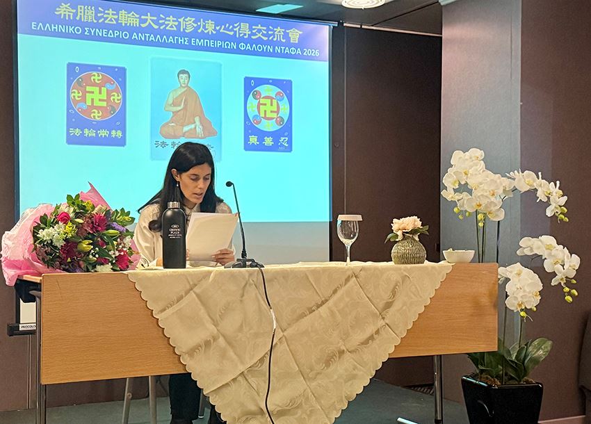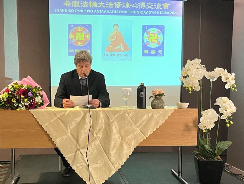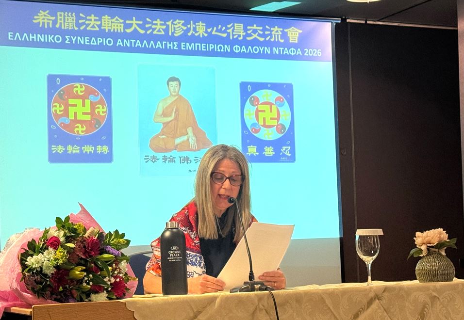 ![]() 图2~5:二零二六年二月一日,希腊一年一度的法轮大法修炼心得交流会在雅典皇冠假日酒店(Crown Plaza Hotel)举行。图为正在发言的法轮功学员 |