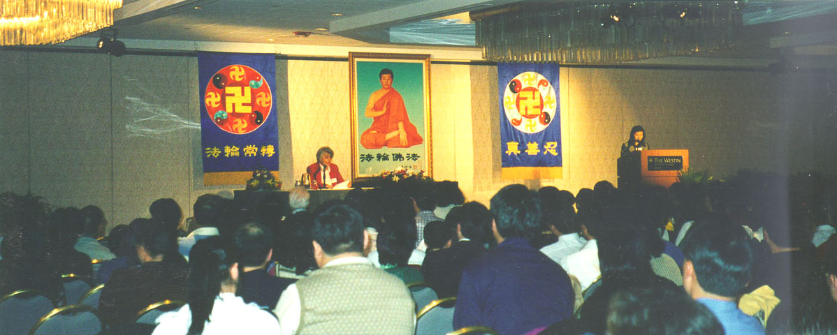 法会的前一天晚上,来自各地的弟子在DAYS INN进行了小组学法交流,还有的在打坐中度过了新旧世纪之交。