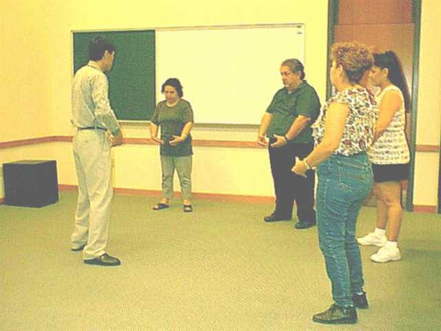 十月二十一日是奥斯汀市市长颁布的“法轮大法日”,来自达拉斯、圣安东尼奥的学员与奥斯汀当地学员在奥斯汀卡瓦公共图书馆开办了一个洪法班,图书馆门口法轮大法漂亮的横幅以及鲜艳的气球使得整条街道充满了节日的气氛,正巧当天也是图书馆旁的博物馆的一个节日,来来往往很多人,学员们借此机会向人们散发大法资料,然后一部分学员教功,其余学员在图书馆外集体炼功,就象所有其他的洪法活动一样,集体炼功是最好的洪法方式之一,人们的注意力马上就转移到学员们的炼功上。