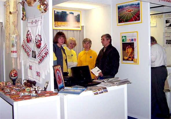 整个四天中很多人参观我们的展位和索取资料。有的想炼法轮功,询问在哪里可以买书和怎么开始炼等等。
