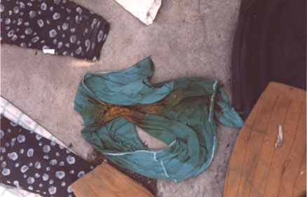 6.被恶徒丢弃在院落浸透着血渍的陈子秀的全部衣物。