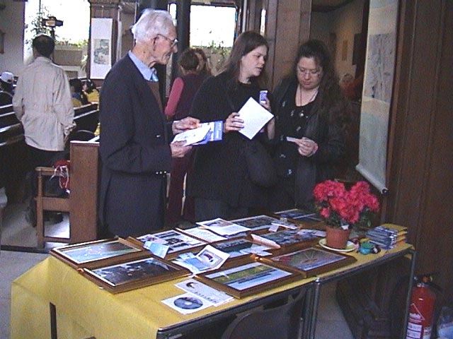 在伦敦游行的同时,章翠英的画展也在伦敦举行。这次画展是于上星期天在伦敦开展一致持续到4.25这一天。画展先后在两个地方举行。最初在一个艺术馆里展出,后期移至一座临街的教堂里面。画展期间观展的人流络绎不绝。直到晚上八点仍有人前来,在画展的同时还展出了“正法之路”图片。许多来看展览的观众都为章翠英的绘画作品所呈现的独特的艺术魅力所倾倒,更被她为证实大法而身陷囹圄八个月历尽磨难、矢志不移的高风亮节所震撼。人们看了章翠英优美的画之后,再看到“正法之路” 图片展中大法弟子遭受迫害的图片,无不震惊,他们怎么也无法理解江泽民集团的残暴行径。在画展期间,发生了许多令人感动的事情。当画展移至教堂展出时,绘画作品中的几副法轮世界的觉者的法像恰好被主办单位悬挂在教堂大厅的正中间。一次,进来一位来教堂的宗教信徒,当看到这几副法像时,立刻跪倒在地,连连叩头。当他看到正法之路图片中李洪志师父的照片,向章翠英询问是否就是师父的照片,当得到肯定的回答后,连连说到:“他是佛,他是佛”!