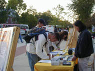 这是法轮功之友、国际大赦和法轮功学员第二次在该校园进行揭露江泽民集团对法轮功迫害的真相的活动。与上次相比,更多的美国青年学生明白了真相后表达了他们反对迫害,维护人权和信仰的心声。参与呼吁活动的学员体会到,青年学生观念少,正义感强,充满热情,所以在大学举行揭露江氏集团迫害法轮功的真相,呼吁青年学生加入反迫害的行列,对于推动让更多的人了解真相,反对迫害和为他们奠定美好未来的基础,具有重大的意义。