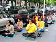 集会上,学员们宣读声明、张贴文图、散发资料、行人交谈并接受了记者的采访。