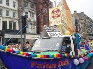 具有浓郁东方特色的法轮大法艺术团已经是第二年参加爱丁堡大游行。去年首次参加就勇得社区组第一名。今年法轮功的游行队伍以激越的陕北腰鼓和祥和的莲花舞互为映衬,再次打动了观众和评委的心,又一次拔得头筹。