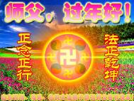 同时向大陆大法弟子和全世界大法弟子祝贺新春:同修们过年好!