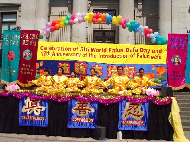 【明慧网2004年5月17日】(明慧记者李华温哥华报导)5月16日,温哥华学员在市中心艺术馆前进行庆祝法轮大法洪传十二周年及法轮大法日,丰富多彩的文艺节目和功法表现,吸引了众多的民众观看,充分展现了大法的美好和大法弟子的风范。(图片/李华摄)