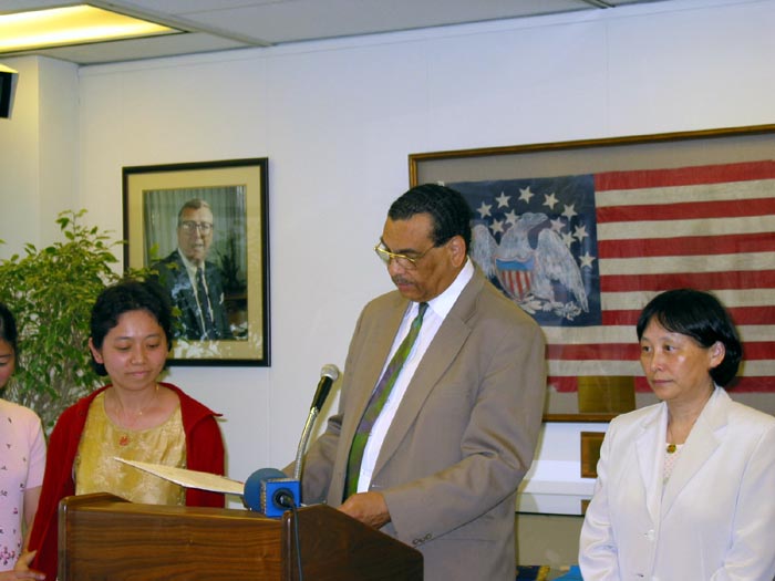 ![]() 市长宣读褒奖令 | ![]() 学员介绍当前法轮功在中国受到的迫害 | ![]() 学员介绍自己的修炼体会 |